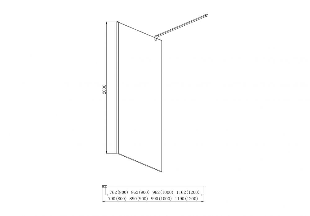 AQ WIW 10020GM Душевая перегородка Walk in с держателем 1000x2000 профиль оружейная сталь, стекло прозрачное