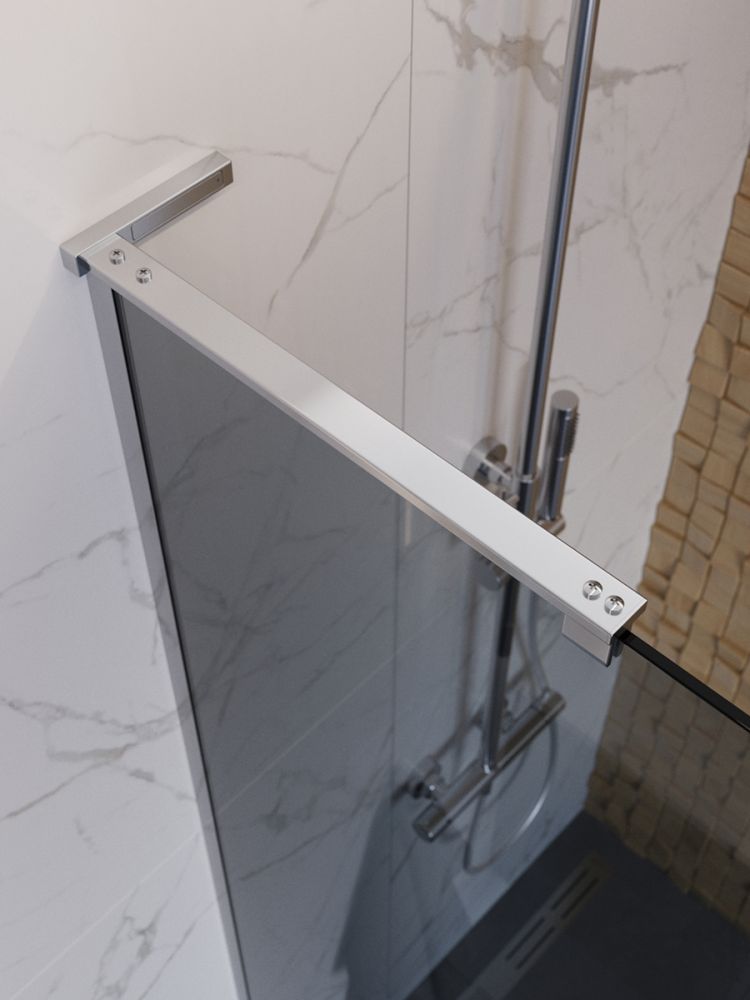 ● L-образный кронштейн сохраняет минималистичный вид и не загромождает пространство, оставаясь практически незаметным в душевой зоне.