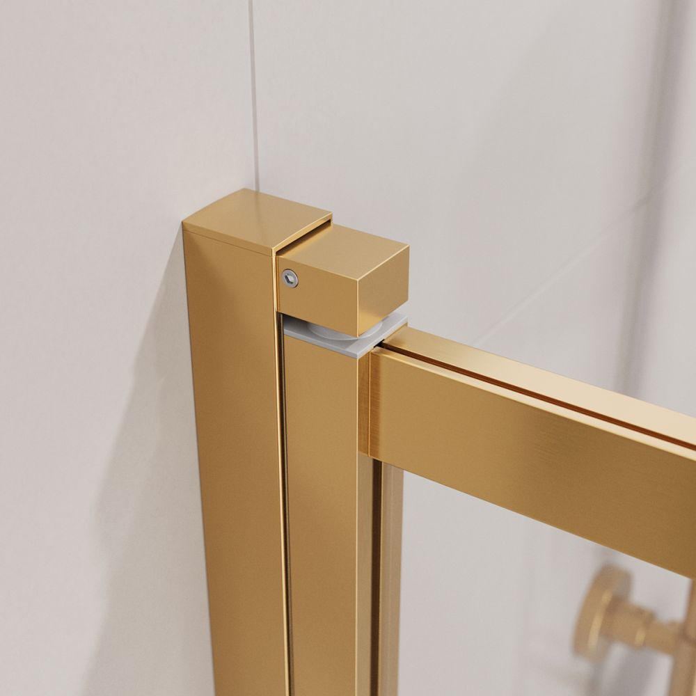 Безопасное закаленное стекло толщиной 5 мм заключено в раму из профиля цвета "хром", "брашированное золото", "оружейная сталь".
