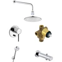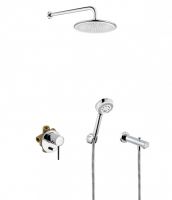 Душевая система Kludi Bozz 386310576 - бескомпромиссно экономная, но при этом необыкновенно элегантная. Характеристики: Цвет: хром. Материал: латунь. Управление: однорычажное. Механизм: керамический картридж. Излив с дивертором. Размер верхнего душа: 25 см. Размер лейки: 9,6 см. Длина шланга: 125 см. Стандарт подводки: 1/2, 3/4. Материал шланга: пластик. Монтаж: на стену. В комплекте поставки: смеситель (внешняя и внутренняя часть), душевой гарнитур, верхний душ, кронштейн, излив для ванны, клапан защиты от обратного потока.