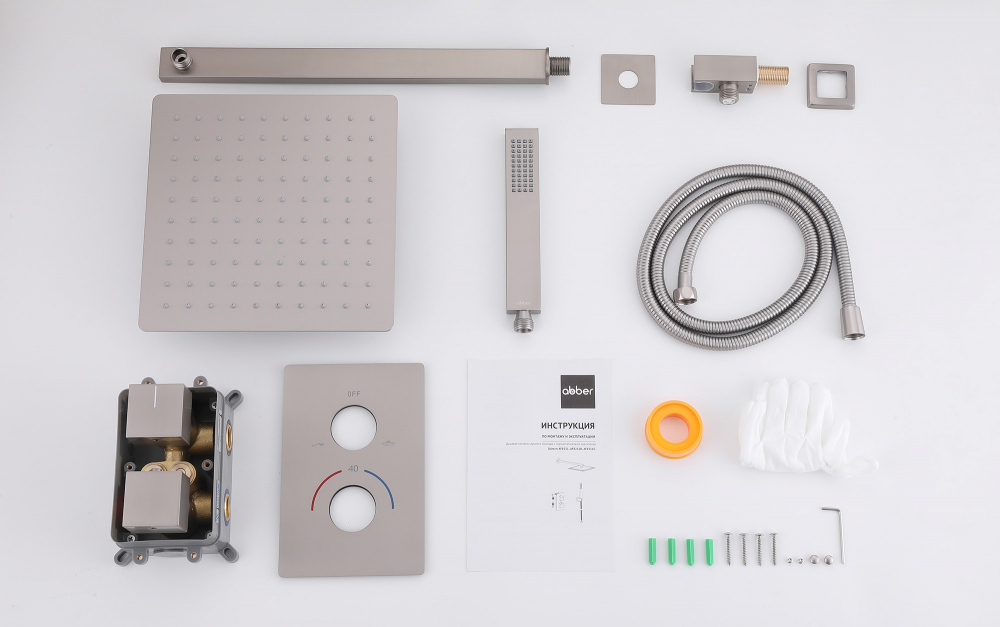 Душевая система от известного немецкого производителя сантехники ABBER Daheim AF8251SP скрытого монтажа без излива, термостат, сатин