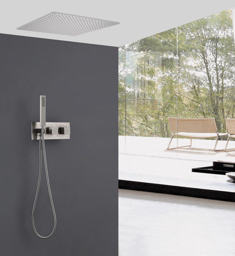 Душевая система от известного немецкого производителя сантехники ABBER Daheim AF8255SP скрытого монтажа без излива, термостат, сатин