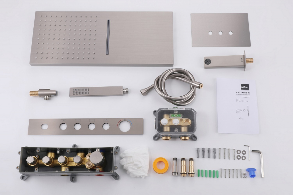 Душевая система от известного немецкого производителя сантехники ABBER Rund AF8753SP скрытого монтажа с изливом, термостат, сатин