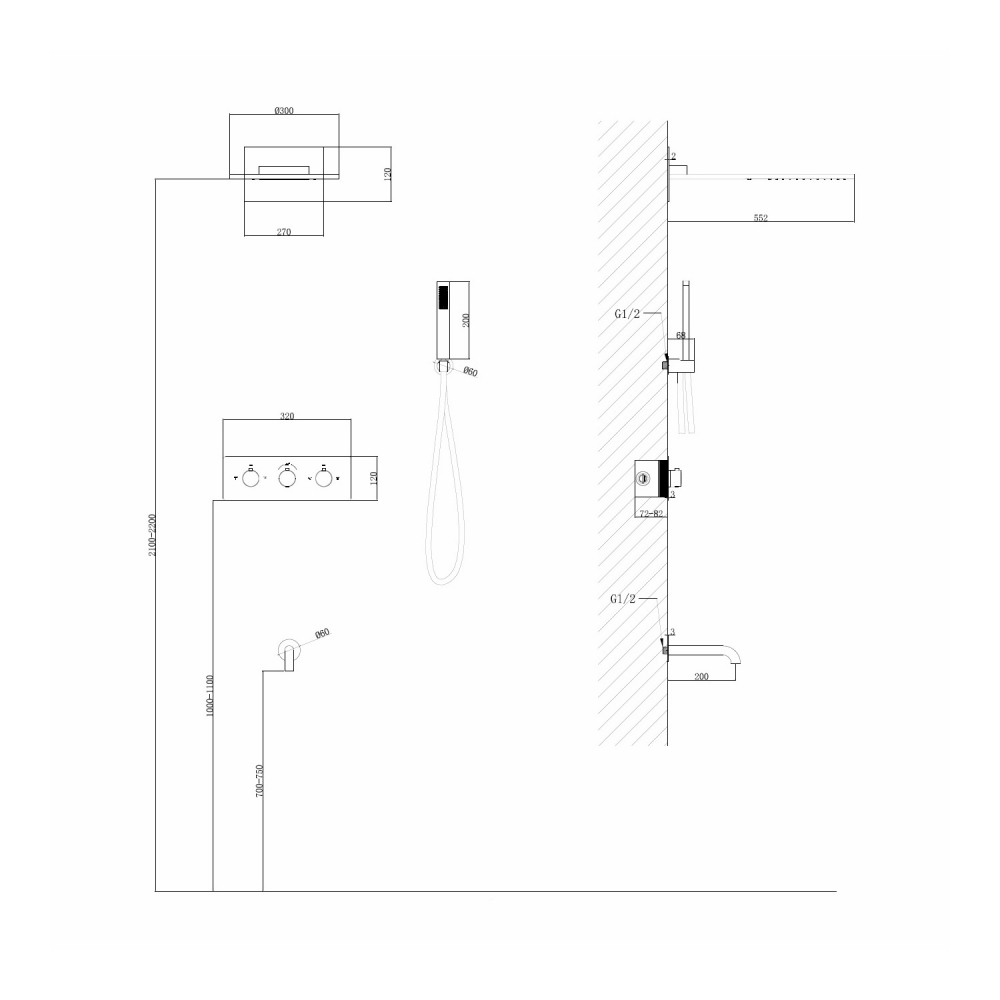 Душевая система ABBER Wasser Kreis AF8150G скрытого монтажа с изливом, термостат, золото матовое