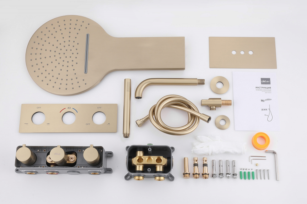 Душевая система от известного немецкого производителя сантехники ABBER Wasser Kreis AF8150G скрытого монтажа с изливом, термостат, золото матовое