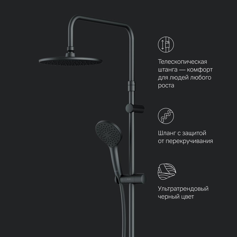 Диаметр душевых леек (верхний душ 220 мм и ручной душ 110 мм) позволит ощутить преимущества тропического душа даже в стандартной ванной, тогда как увеличенная длина шланга 1750 мм обеспечит свободу движений во время принятия душа.