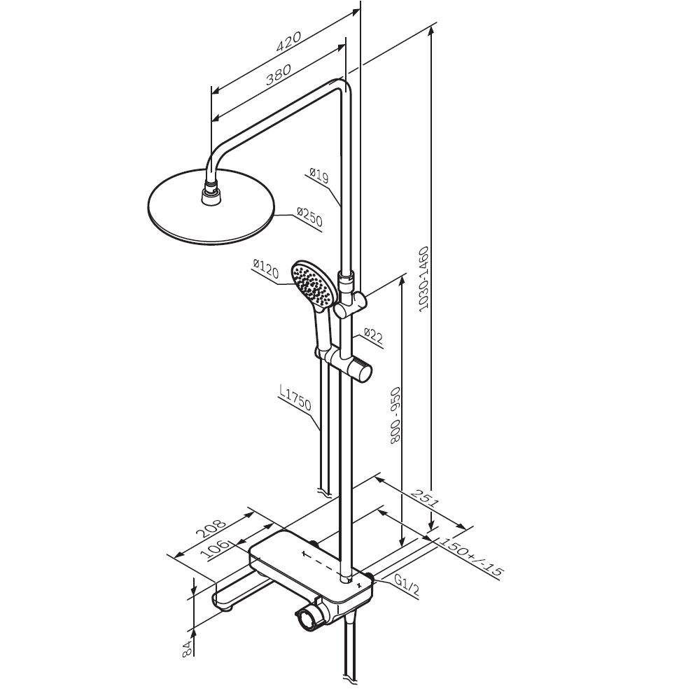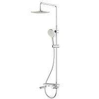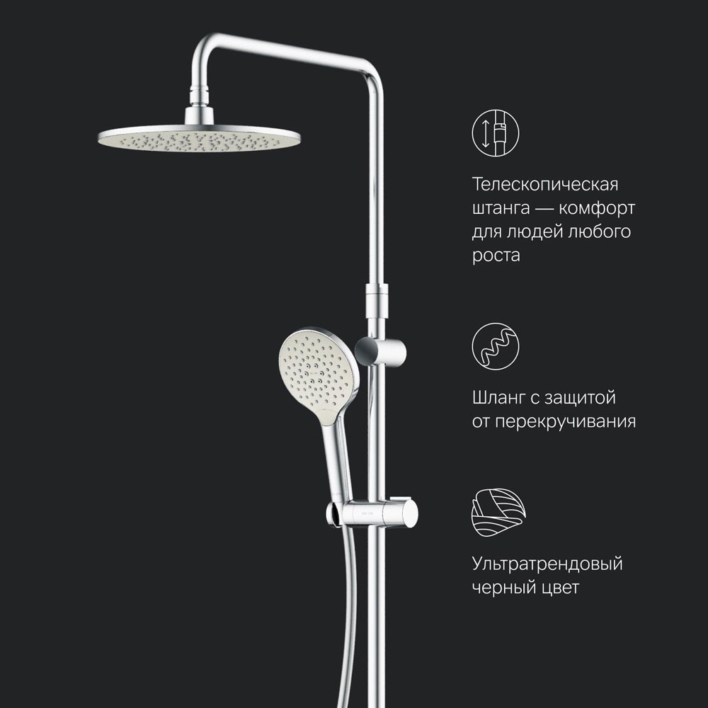 Премиальные размеры и продуманные детали: увеличенный диаметр душевых леек (верхний душ 254 мм и ручной душ 120 мм) позволит ощутить преимущества тропического душа, тогда как увеличенная длина шланга 1750 мм обеспечит свободу движений во время принятия душа. Телескопическая поворотная штанга регулируется по высоте в диапазоне от 1030 до 1460 мм, обеспечивая комфорт для людей любого роста, а шаровой шарнир в держателе верхнего душа позволяет регулировать угол его наклона.