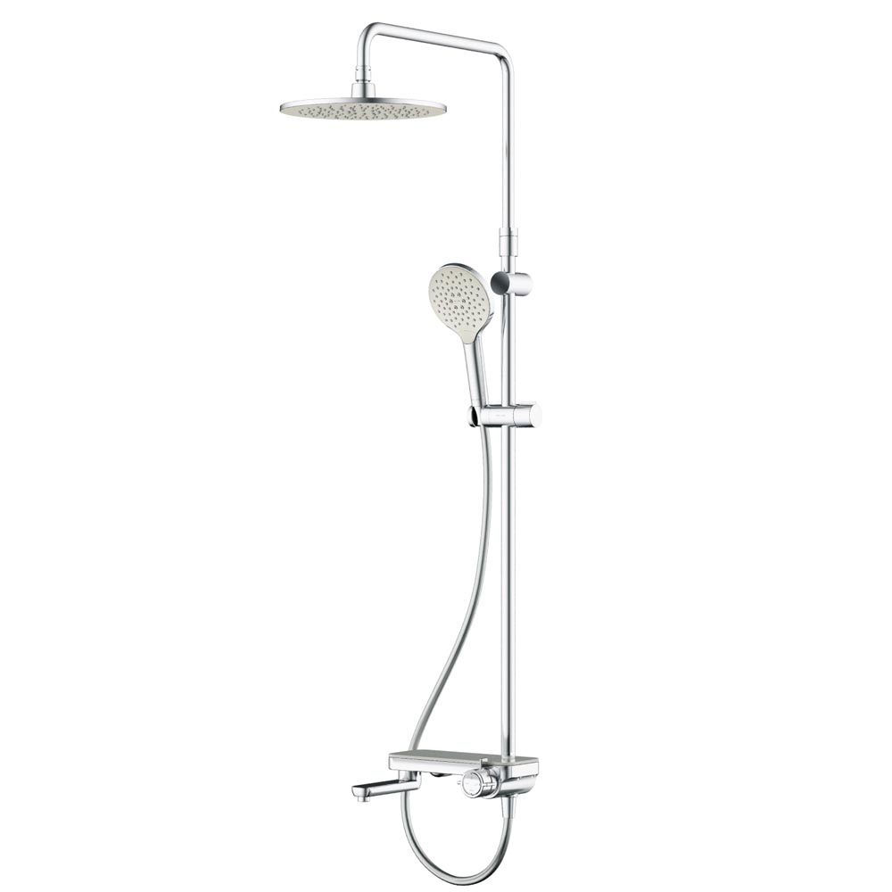 Комментарий: Спустя 3 года могу сказать, что душевая система крайне ненадежная, начиная от полочки, которая расклеилась на втором году использования, заканчивая негерметичными штангой и ручкой переключения. Кнопка переключения душевых режимов также вышла из строя. Кран коротковат.