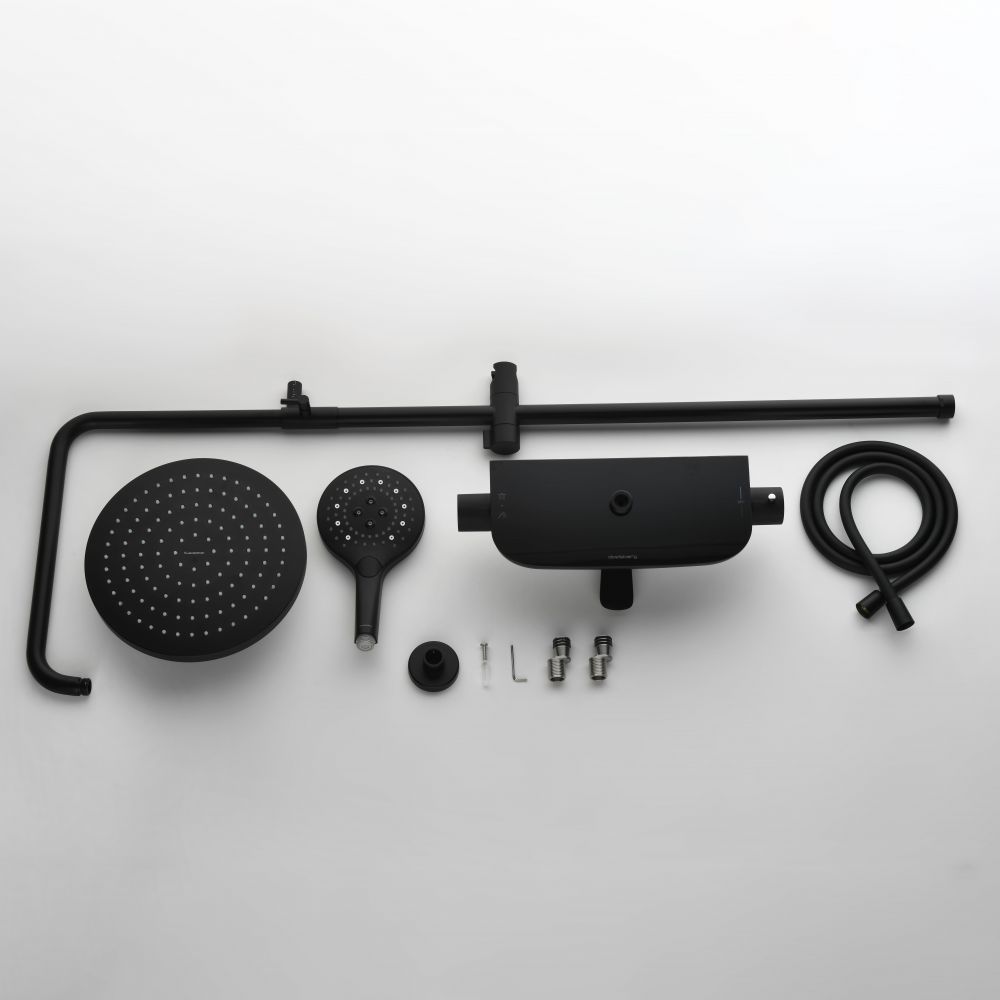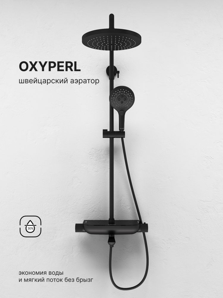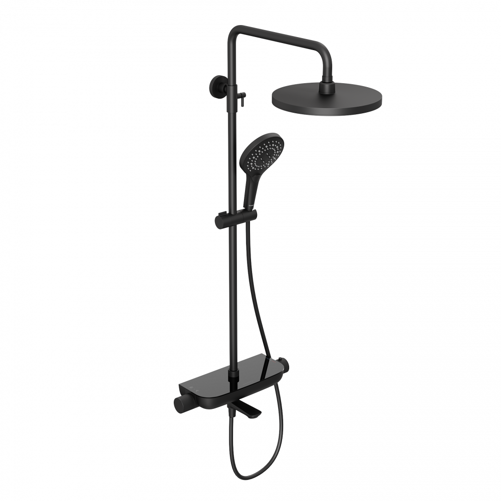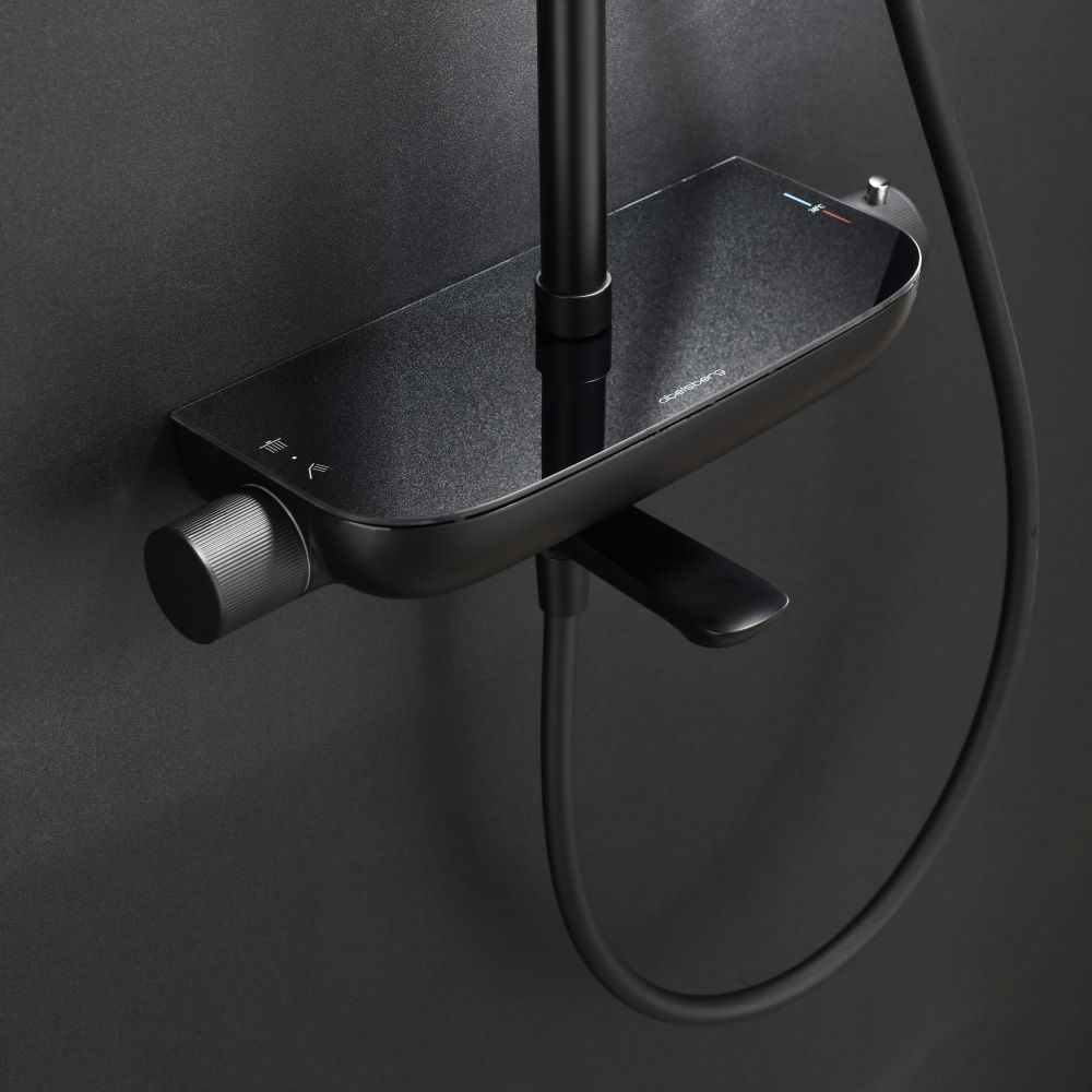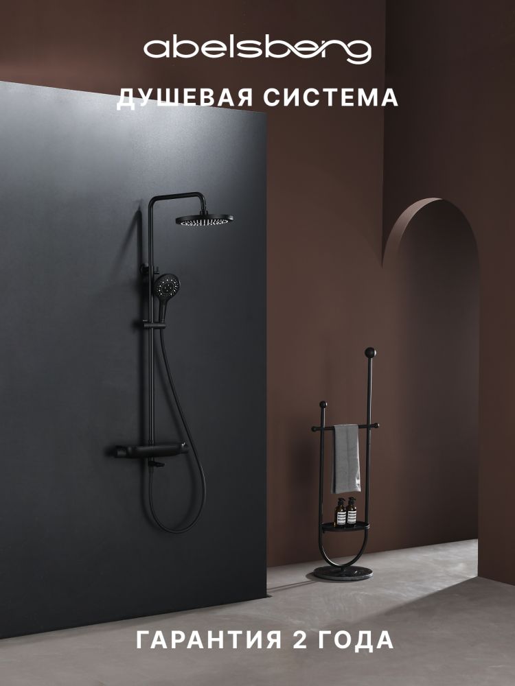 Душевая система Abelsberg Lineara SNS52791MB с термостатом и полкой для ванны и душа, черный