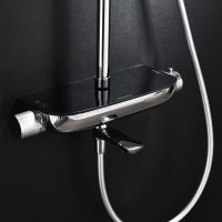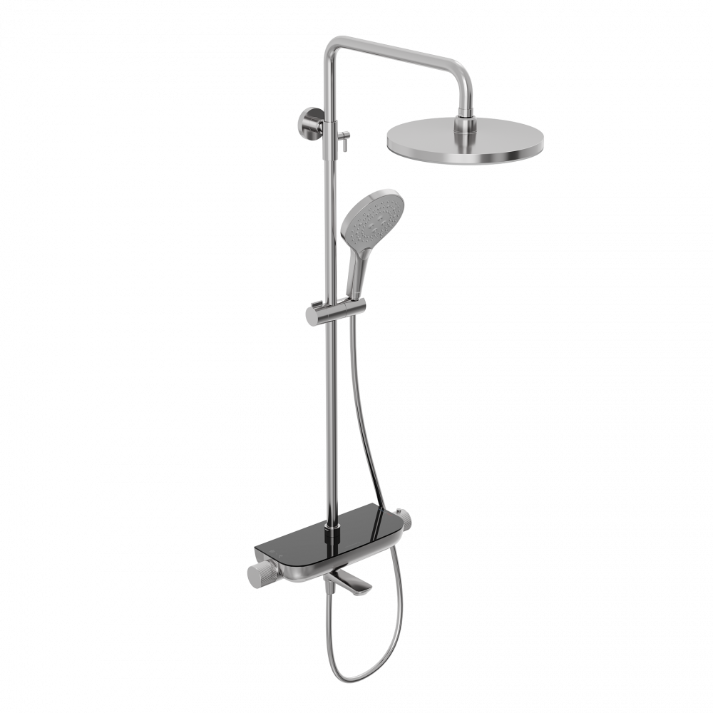 Душевая система Abelsberg Lineara SNS52791CH с термостатом и полкой для ванны и душа, глянцевый хром
