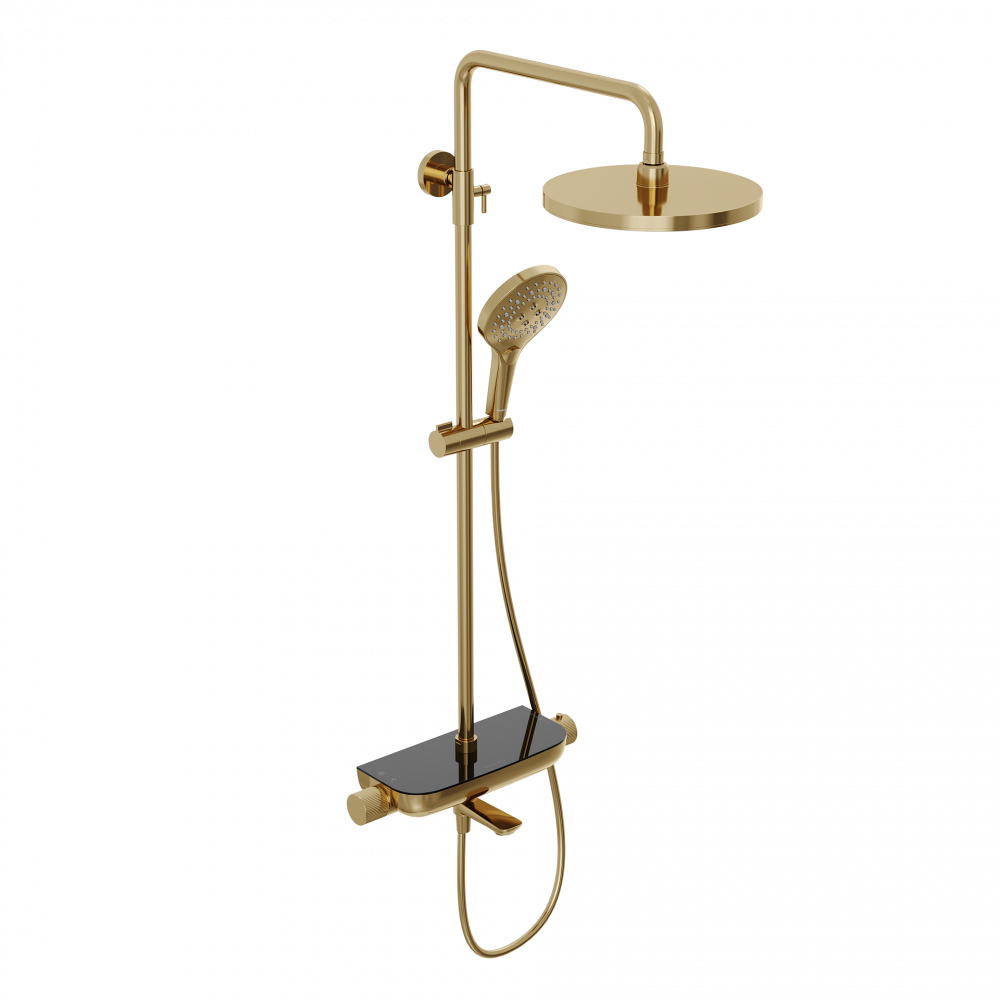 Душевая система Abelsberg Lineara SNS52791BG с термостатом и полкой для ванны и душа, королевское золото