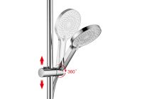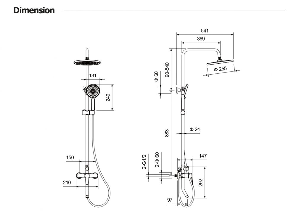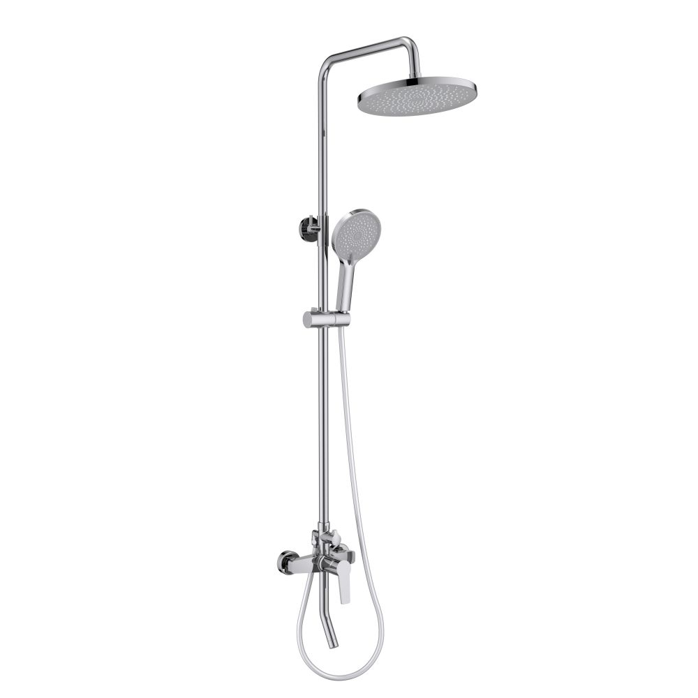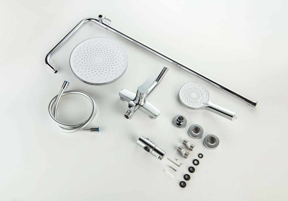Материал корпуса - латунь Ручка из цинкового сплава Керамический картридж Wanhai 35 мм Душевой шланг 1.5м из ПВХ Верхний душ из пластика 255мм Ручной душ из пластика на 3 функц, Душевая стойка из нерж. Эксцентрики из нерж стали Упаковано в коробку с пеной EPE