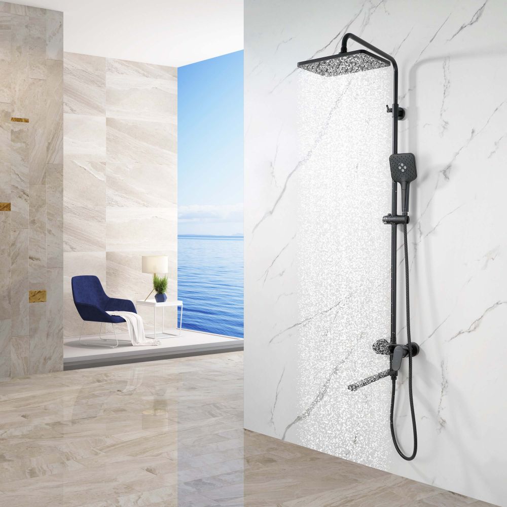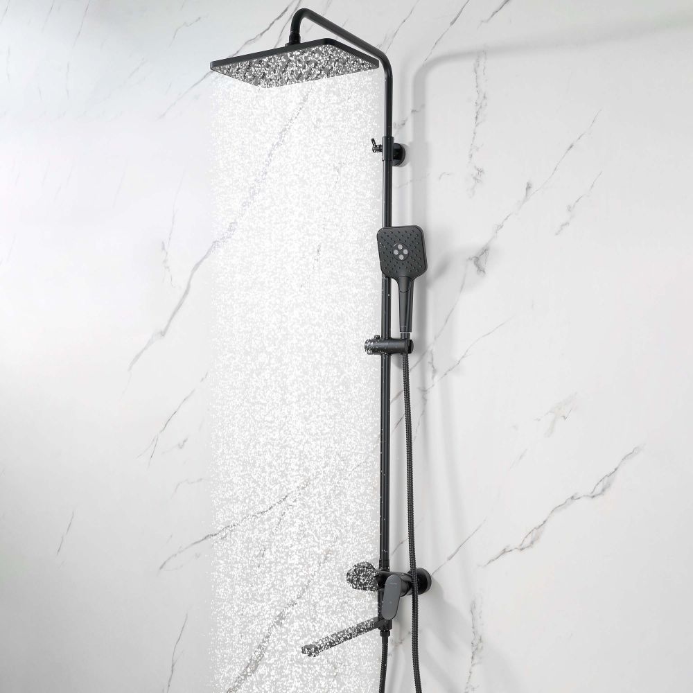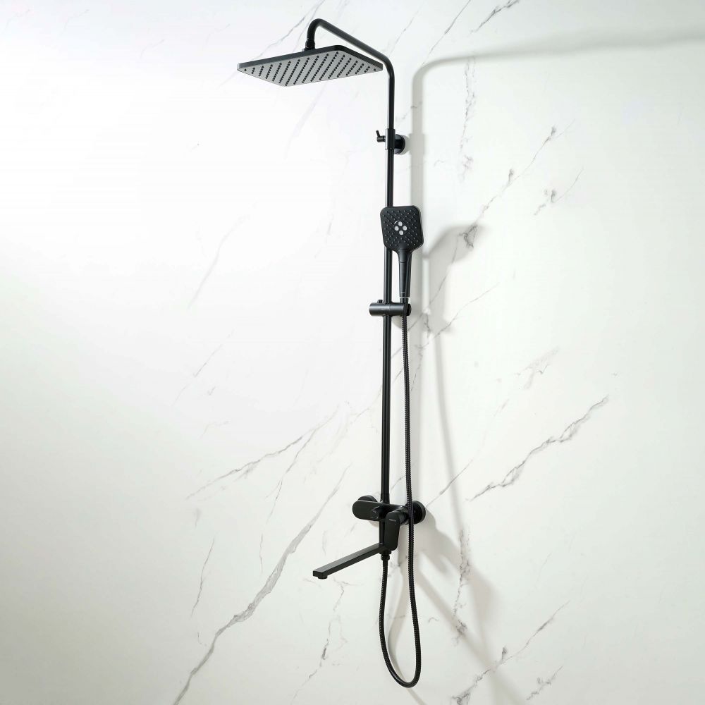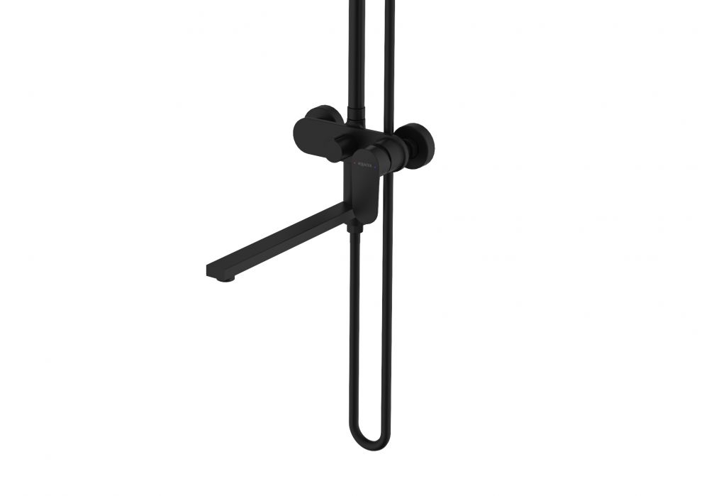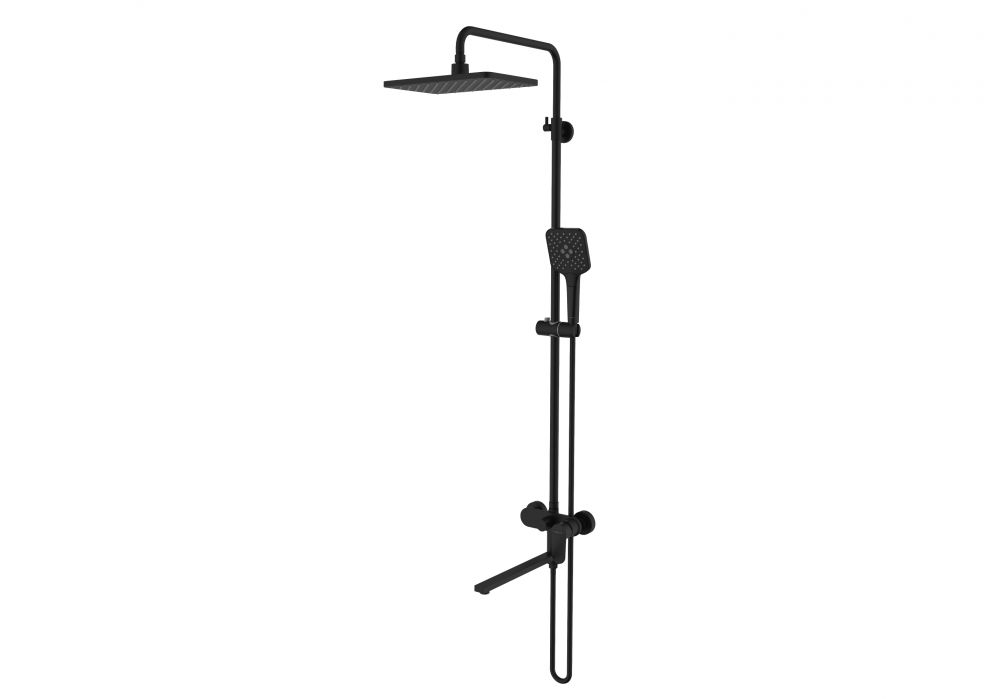 AQ2840MB НИКА душевая система (смеситель для ванны) 3 jet 300х193 мм с длинным изливом, матовый черный
