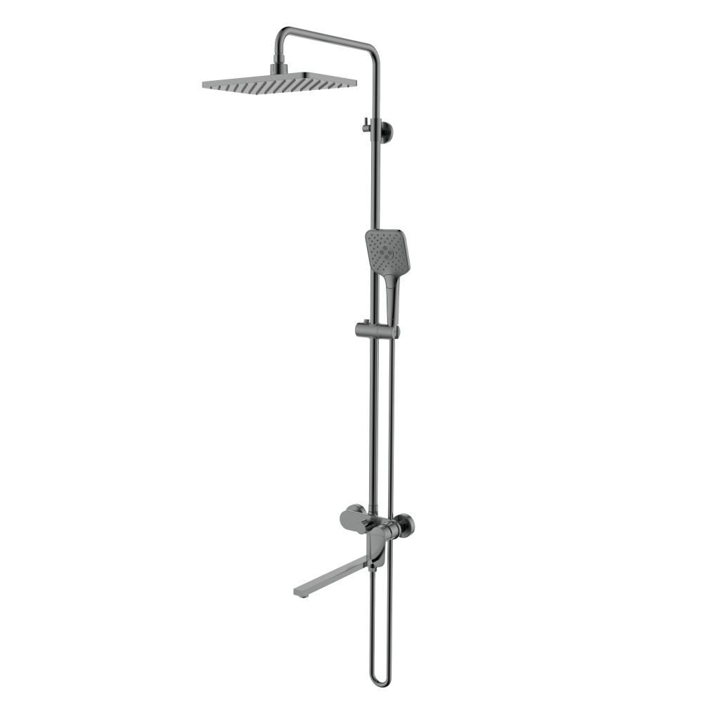 AQ2840BGM НИКА душевая система (смеситель для ванны) 3 jet 300х193 мм с длинным изливом, оружейная сталь