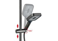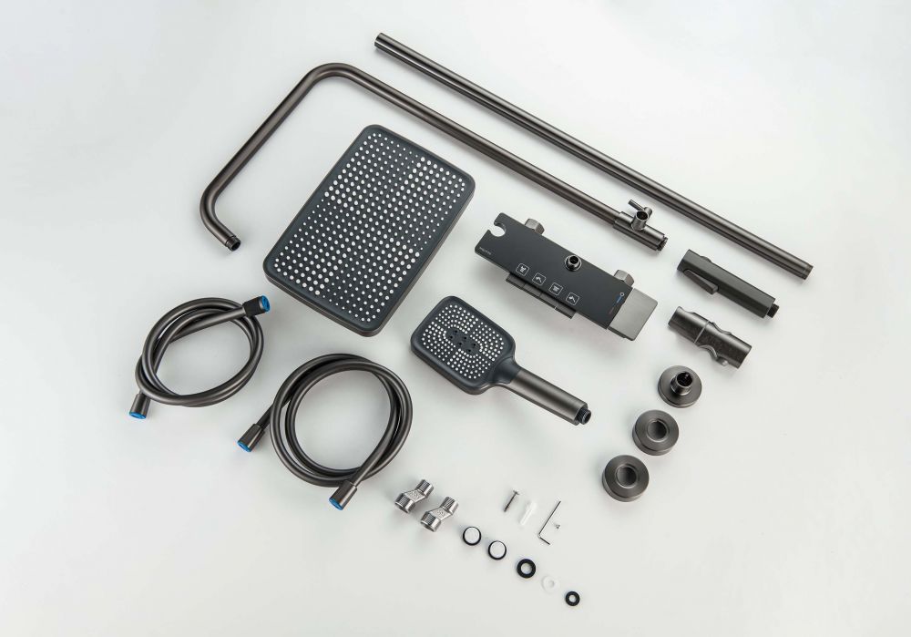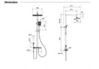 Материал корпуса - латунь Ручка из цинкового сплава Керамический картридж Alfano Душевая стойка из нерж. Душевой шланг 1.5м из ПВХ Душевой шланг 1.2м из ПВХ Верхний душ из пластика 295х195мм Ручной душ из пластика на 3 функц Гигиенический душ из пластика Упаковано в коробку с пеной EPE