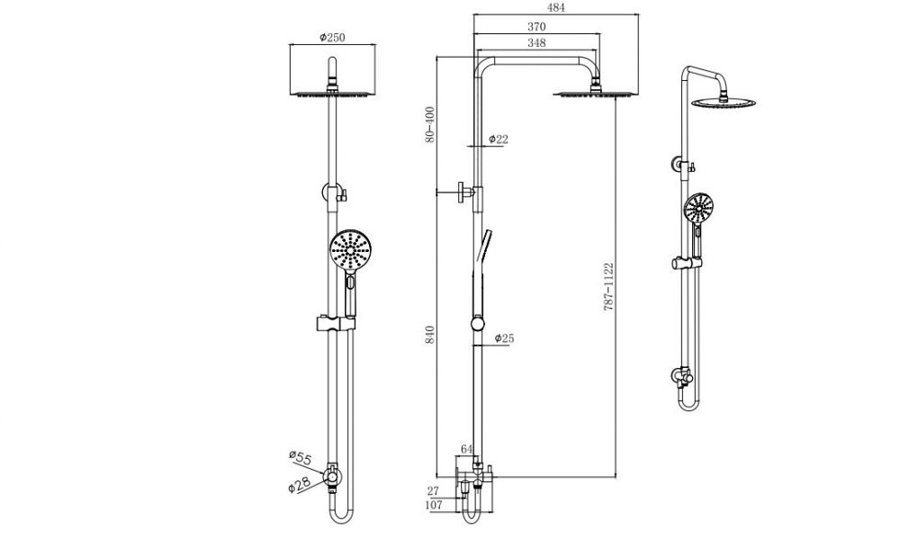 AQ2046BGM ВЕГА душевая система 3jet 250мм Reno, оружейная сталь