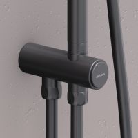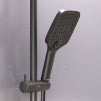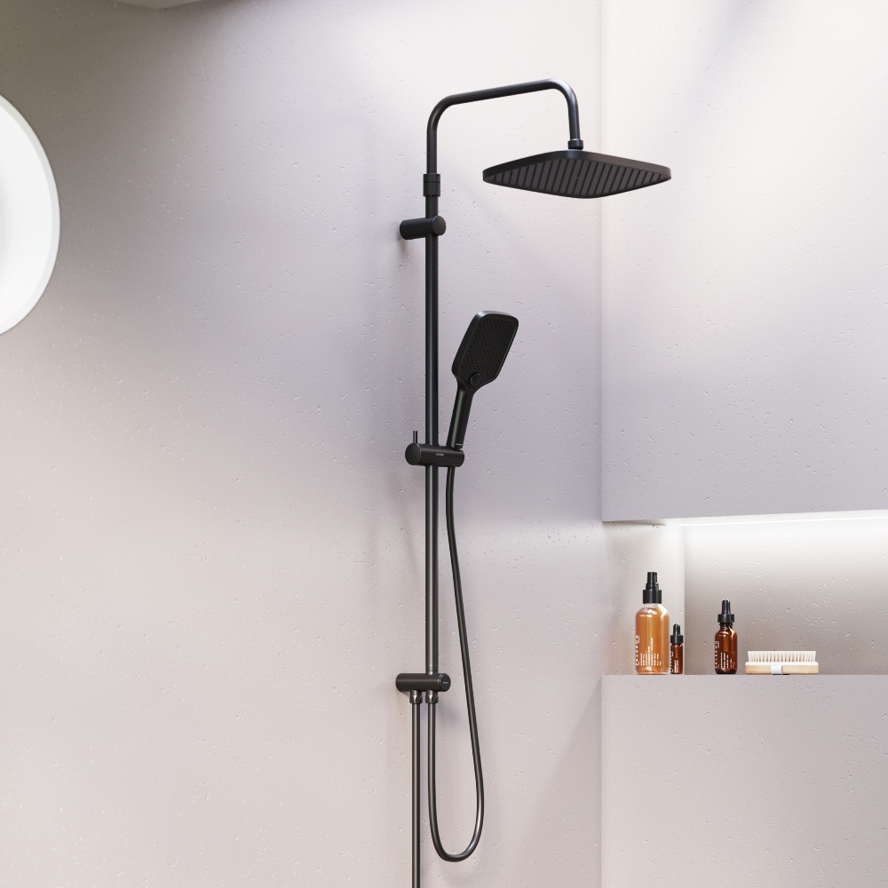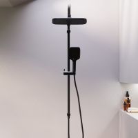 Мягкие геометричные формы душевой система Gala в сочетании с трендовым черным покрытием идеально впишутся в современную ванную комнату. Простая и минималистичная на первый взглядона чрезвычайно функциональна и удовлетворит даже самого искушенного пользователя. Благодаря телескопической штанге с диапазоном регулировки в 400 мм (1030м м – 1460 мм) водные процедуры будут одинаково комфортны абсолютно для всех членов семьи. Настоящее SPA прямо у вас дома: увеличенный размер тропической лейки (220 мм) и 3 режима ручного душа сделают ваши ежедневные ритуалы незабываемыми. Простота и минимализм во всем: переключайте потоки воды между ручной и тропической лейкой всего одним нажатием. Специальное PVD-покрытие гарантирует чрезвычайную прочность душевой системы. Матово-черная поверхность не выцветает с годами и устойчива к механическим повреждениямзагрязнениям и отпечаткам пальцев. Поддерживать чистоту стало еще проще благодаря функции очистки резиновых форсунок Rub& Clean. ""