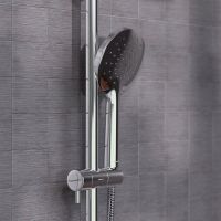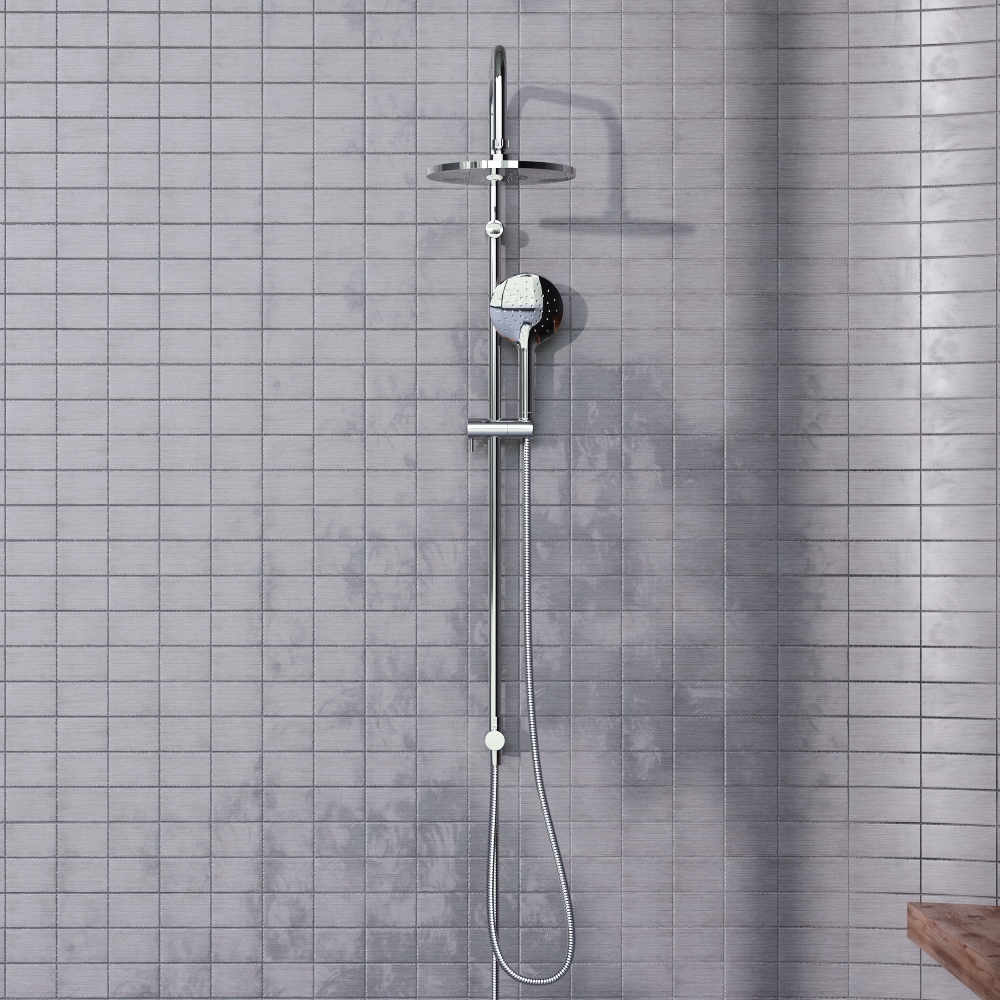 Минималистичный дизайн в классическом цвете хром - решение для современных дизайнерских проектов. Плавные линии в сочетании с массивными формами создают исключительную коллаборацию стиля. Увеличенные душевые лейки позволят полностью насладиться душевыми процедурами - взбодриться утром и расслабится вечером. Длина душевой штанги составляет 1010 мм ее можно установить на любой высоте и комфортно пользоваться душем людям любого роста. Наши инженеры рассчитали оптимальное расстояние между форсунками для распределения напора воды равномерно по всей лейке. В комплекте имеется душевой шланг с защитой от перекручивания. ""