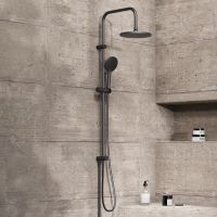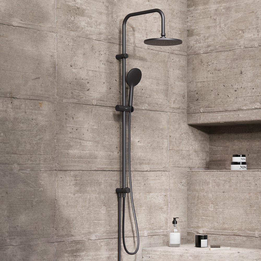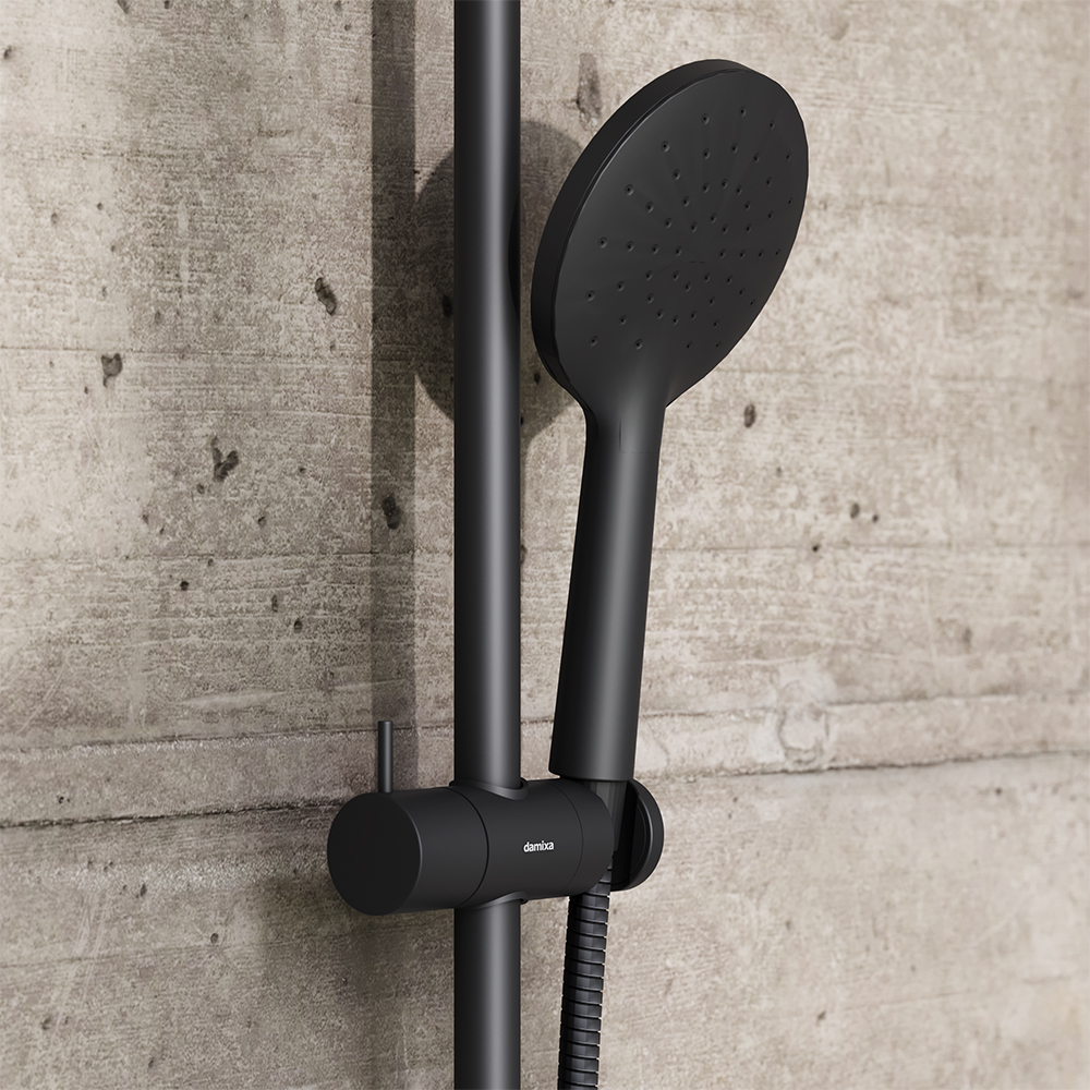 Минималистичный дизайн в трендовом черном матовом оттенке - решение для современных дизайнерских проектов. Плавные линии в сочетании с массивными формами создают исключительную коллаборацию стиля. Увеличенные душевые лейки позволят полностью насладиться душевыми процедурами - взбодриться утром и расслабится вечером. Длина душевой штанги составляет 1010 мм ее можно установить на любой высоте и комфортно пользоваться душем людям любого роста. Матовый цвет защищен покрытием High Gloss которое уберегает поверхность душевой системы от мелких повреждений. Наши инженеры рассчитали оптимальное расстояние между форсунками для распределения напора воды равномерно по всей лейке. В комплекте имеется душевой шланг с защитой от перекручивания. ""