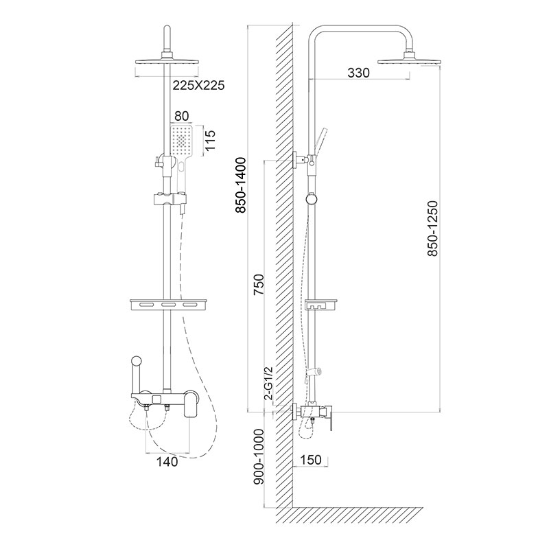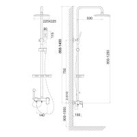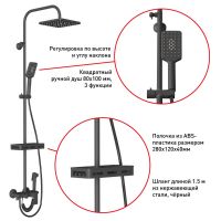 • Стойка для верхнего душа L=1100мм в чёрном исполнении из нержавеющей стали толщиной 1,5мм и возможностью регулировки по высоте.