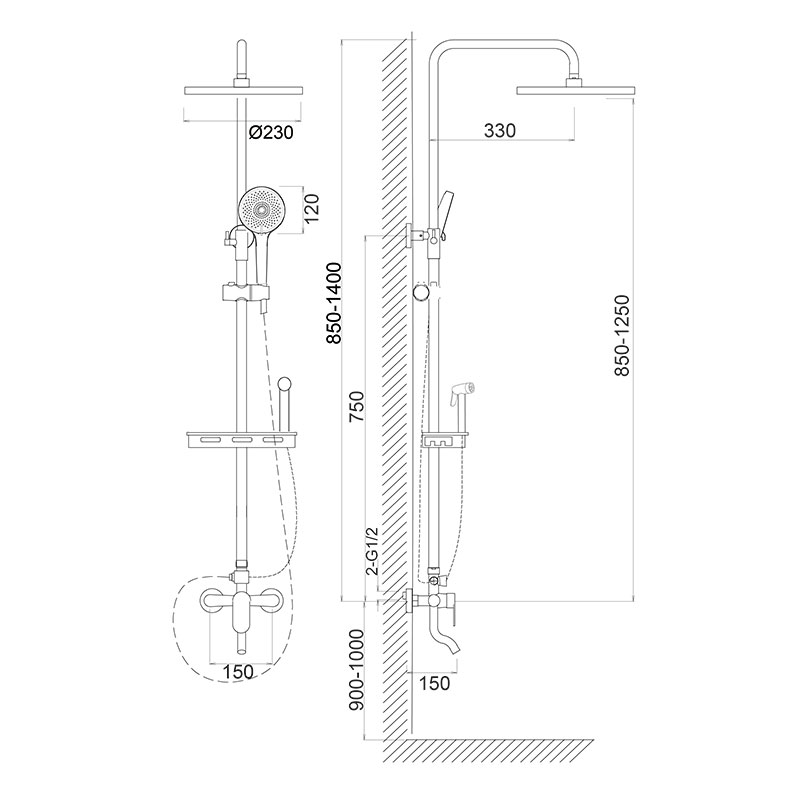 • Стойка для верхнего душа L=1100мм круглого сечения из нержавеющей стали толщиной 1,5мм с чёрным матовым покрытием.