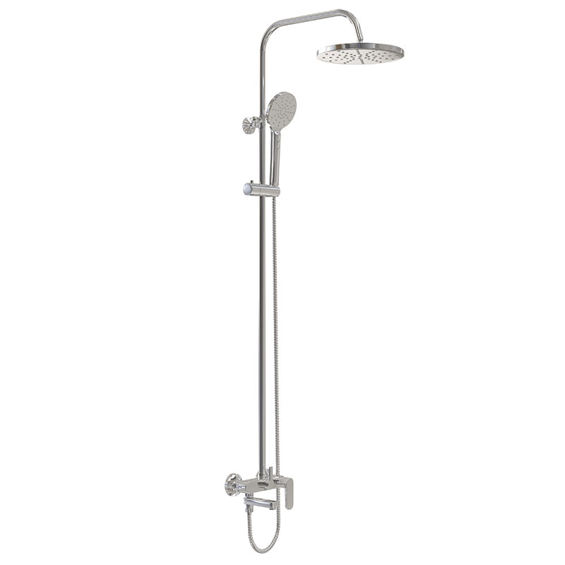Душевая система Melodia Rock, хром MSC00106C для ванны укомплектована смесителем для ванны латунным одноруким со складным изливом с керамическим картриджем 35мм. Складной излив также является переключателем на верхний душ.
