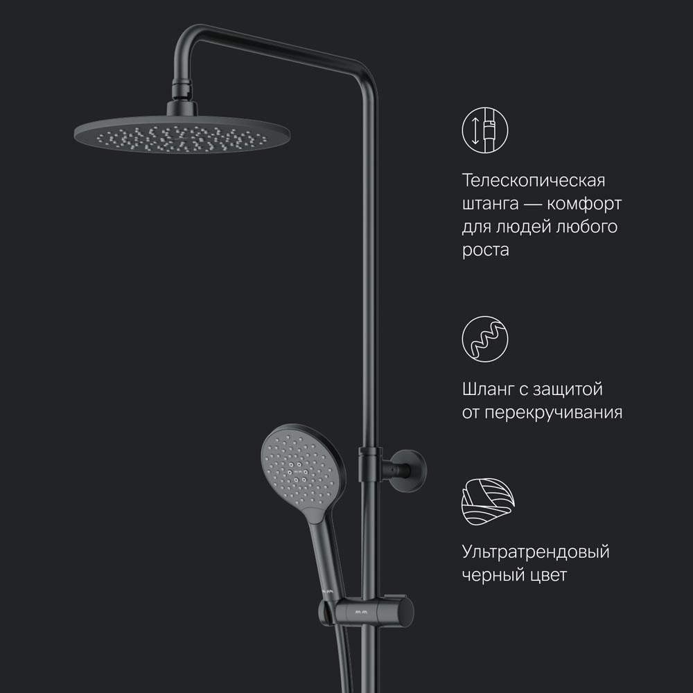 Душевая система c термостатом AM.PM Like F0780522 в элегантном черном цвете имеет три режима работы. Это позволяет подобрать оптимальный вариант для каждого пользователя.
