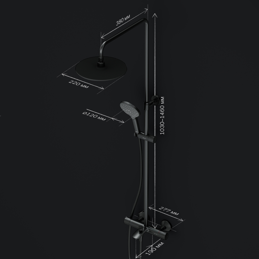 Душевая система c термостатом AM.PM Like F0780522, черная