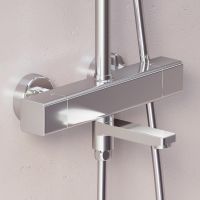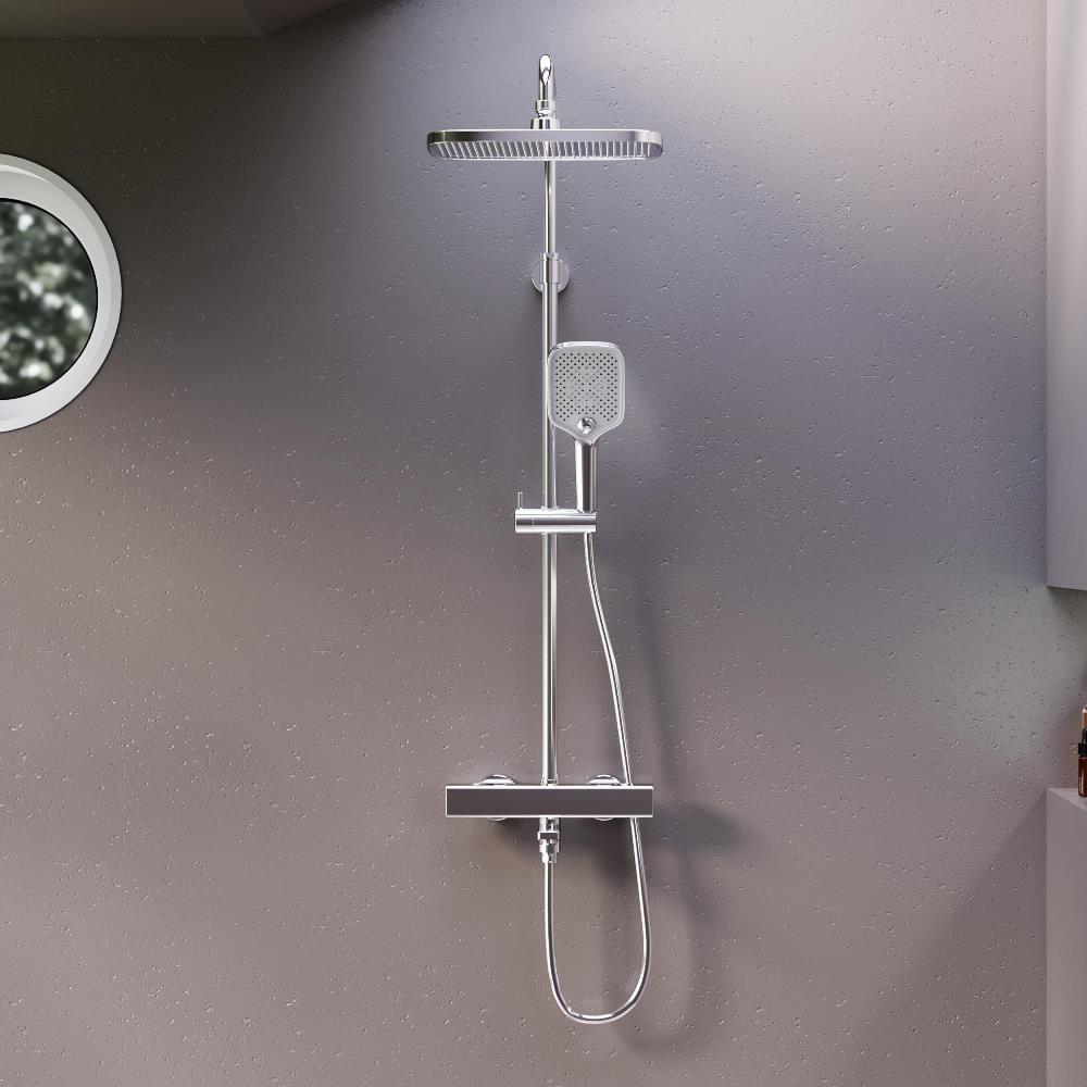 Душевая система Gala обладает мягкими геометричными формамикоторые идеально впишутся в современную ванную комнату.Простая и минималистичная на первый взглядона чрезвычайно функциональна и удовлетворит даже самого искушенного пользователя. Максимальная безопасность: термостатический картридж 35 мм обеспечивает точную настройку температуры и напора воды. Выставляйте комфортные для вас параметры легким поворотом правой ручки смесителя. Благодаря телескопической штанге с диапазоном регулировки в 400 мм водные процедуры будут одинаково комфортны абсолютно для всех членов семьи. Настоящее SPA прямо у вас дома: увеличенный размер тропической лейки с регулируемым углом наклона (220 мм) и 3 режима ручного душа сделают ваши ежедневные ритуалы незабываемыми. Простота и минимализм во всем: переключайте потоки воды между ручной и тропической лейкой поворотом левой ручки смесителя. Функция излива включается путем поворота излива на 90 градусов в режиме ручной лейки. Специальное PVD-покрытие гарантирует чрезвычайную прочность душевой системынадежно защищая хромовое покрытие от механических поврежденийкоррозии и потери цвета. ""