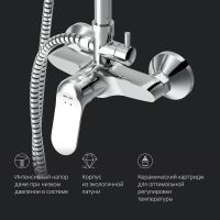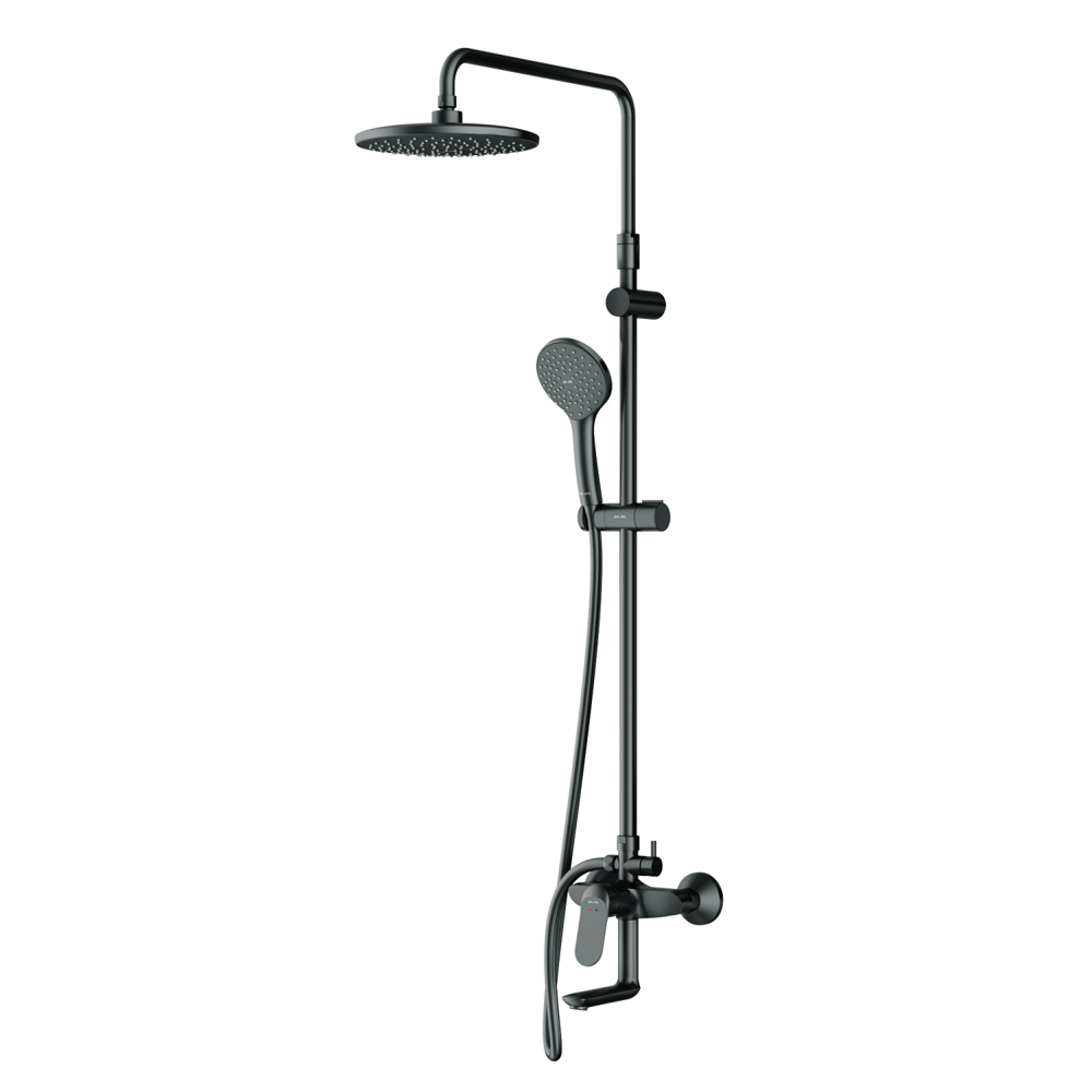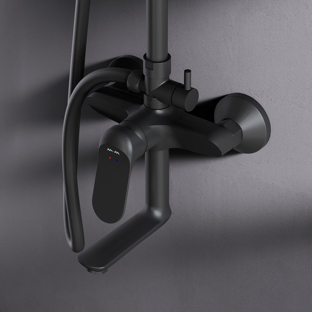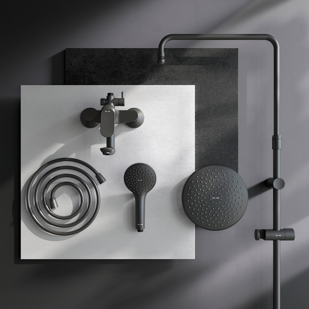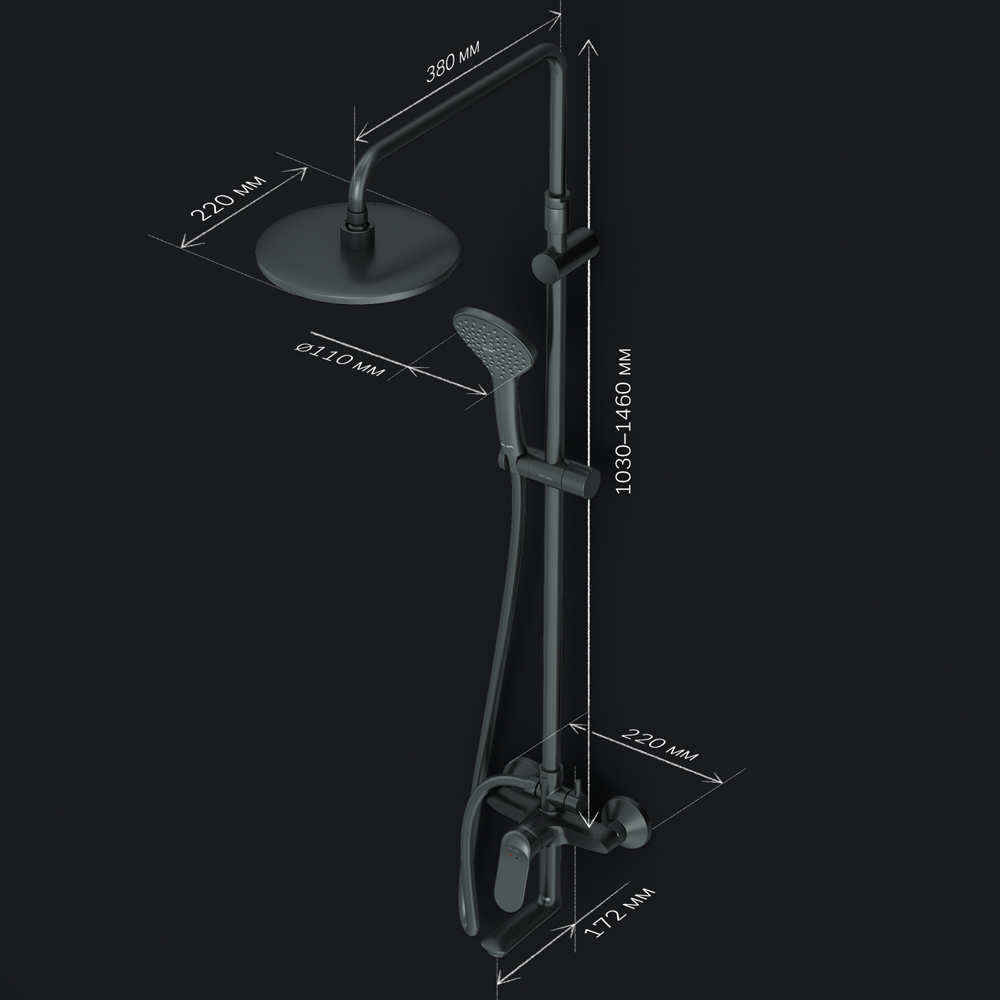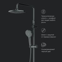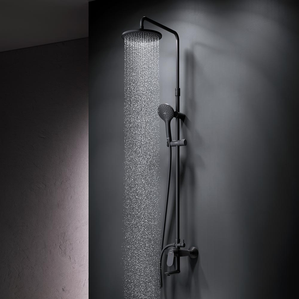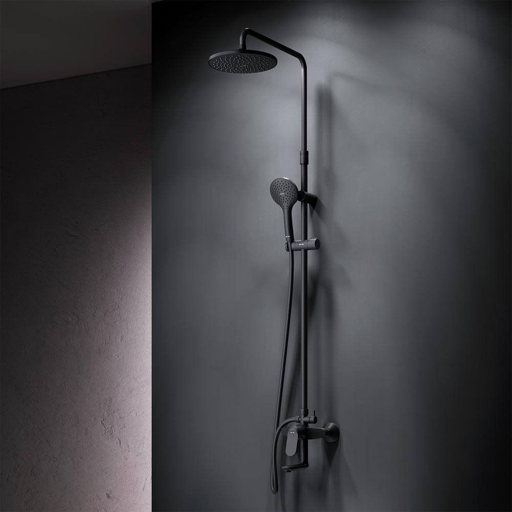 Тотальный дизайн в действии: все детали душевой системы – от пропорций ручного и верхнего душей до рисунка расположения форсунок на лейках – подчинены единой дизайн-концепции коллекции Sunny. Смесители коллекции Sunny отмечены престижной международной наградой Good Design. Стильный дизайн смесителя для ванны/душа с функциональным поворотным изливом легко впишется в современную ванную комнату. Диаметр душевых леек (верхний душ 220 мм и ручной душ 110 мм) позволит ощутить преимущества тропического душа даже в стандартной ванной тогда как увеличенная длина шланга 1750 мм обеспечит свободу движений во время принятия душа. Продуманные детали для удобства использования: телескопическая поворотная штанга регулируется по высоте в диапазоне от 1030 до 1460 мм обеспечивая комфорт для людей любого роста. Черный цвет как нельзя лучше подчеркивает изящество силуэтов смесителя и душевой системы добавляя роскошь интерьеру ванной комнаты.