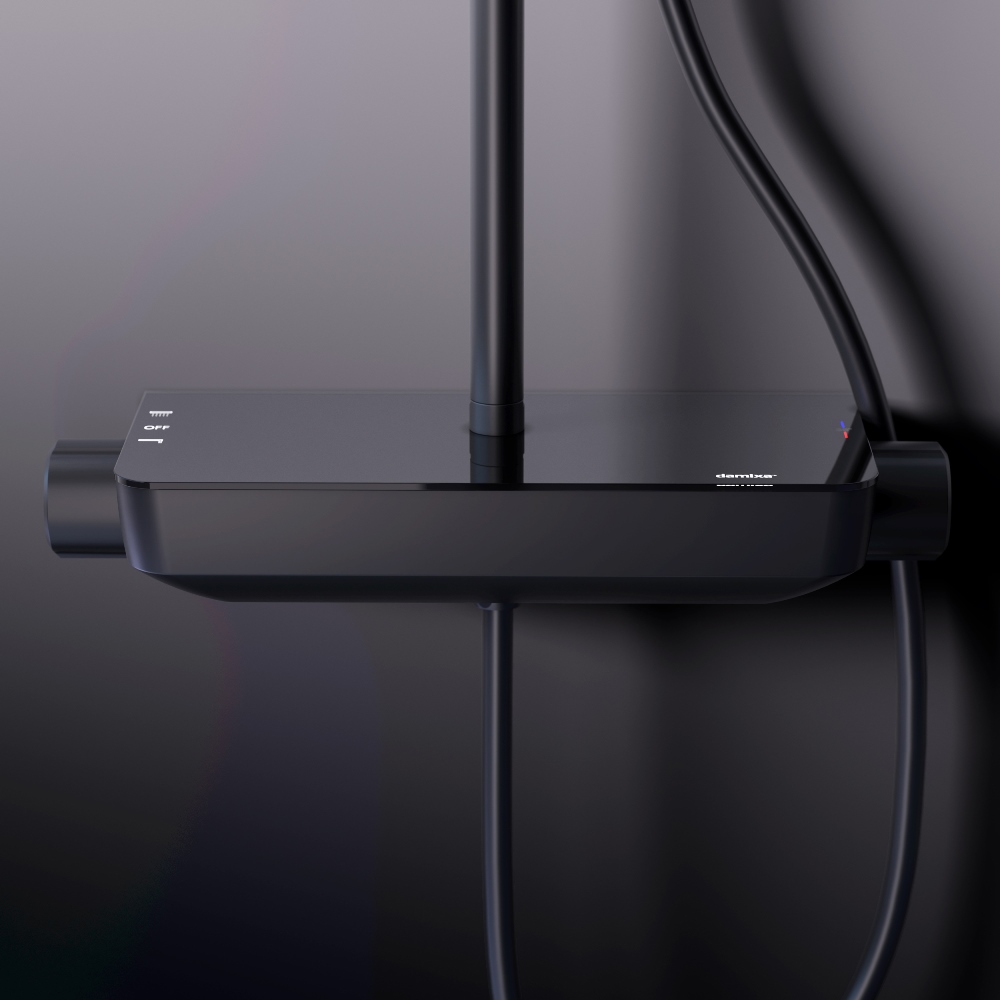 Душевые системы из коллекции Scandinavian Pure – воплощение минималистичного датского дизайна и солидного скандинавского качества. Элегантные обтекаемые формы и матовое черное покрытие станут настоящим украшением современной ванной комнаты. Непревзойдённый комфорт и удобство: смеситель выполнен в виде компактной но вместительной полочки из закаленного стекла где вы можете хранить все необходимые вещи. Увеличенный диаметр верхнего душа с возможностью регулировки угла наклона и три режима ручного душа выполненного в трендовой форме стика подарят вам полный спектр ощущений - помогут взбодриться утром и расслабится вечером. Переключайте потоки воды между ручной и тропической лейками плавным поворотом ручки смесителя. Простота и минимализм во всем: невидимый излив не занимает много места в пространстве и выглядит более эстетично но при этом не уступает классическим моделям в решении бытовых вопросов. Благодаря функции очистки резиновых форсунок Rub&Clean поддерживать чистоту стало еще проще. Инновационное PVD-покрытие гарантирует чрезвычайную прочность душевой системы. Матово-черная поверхность не выцветает с годами и устойчива к механическим повреждениям загрязнениям и отпечаткам пальцев.
