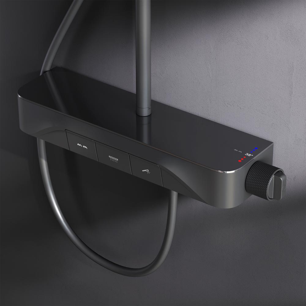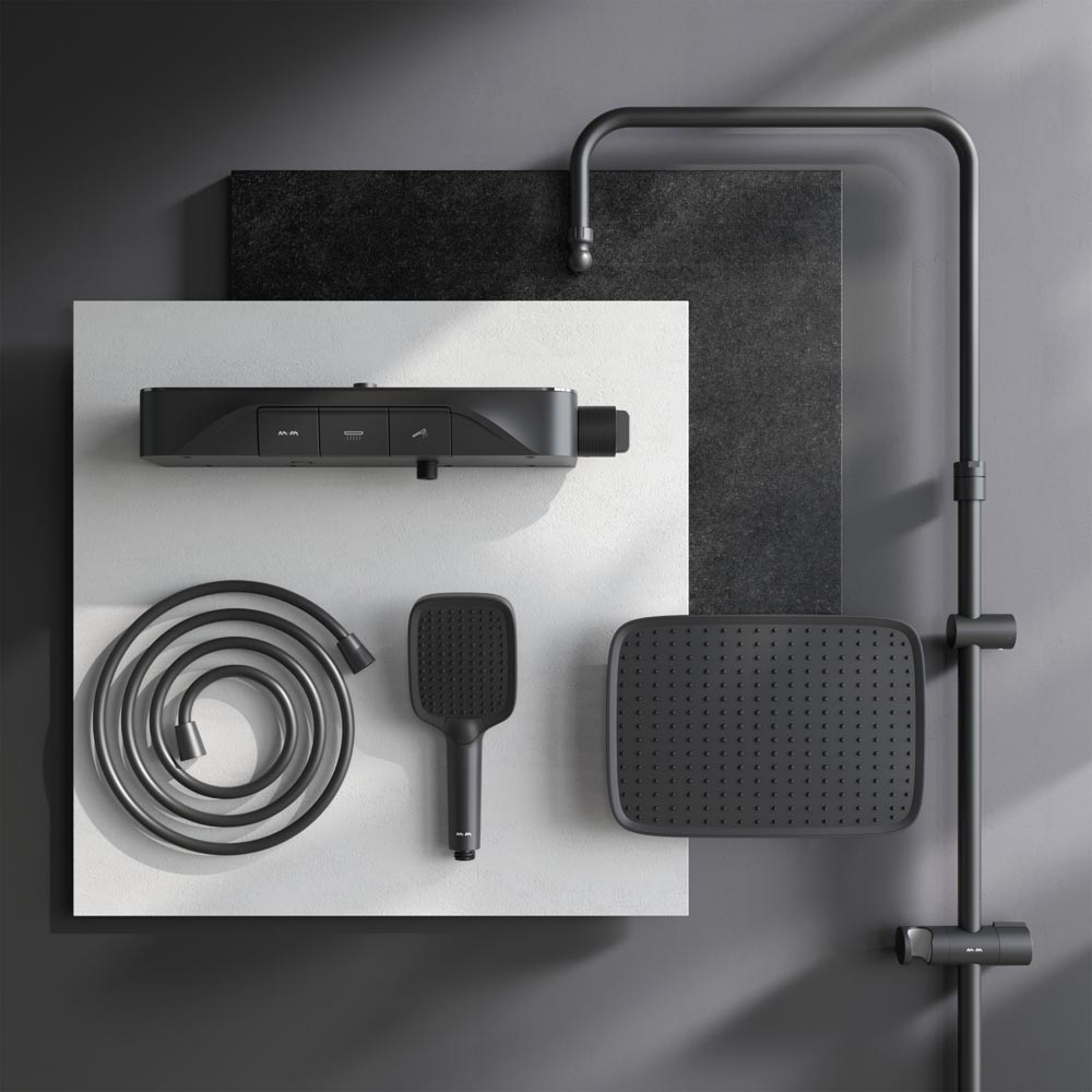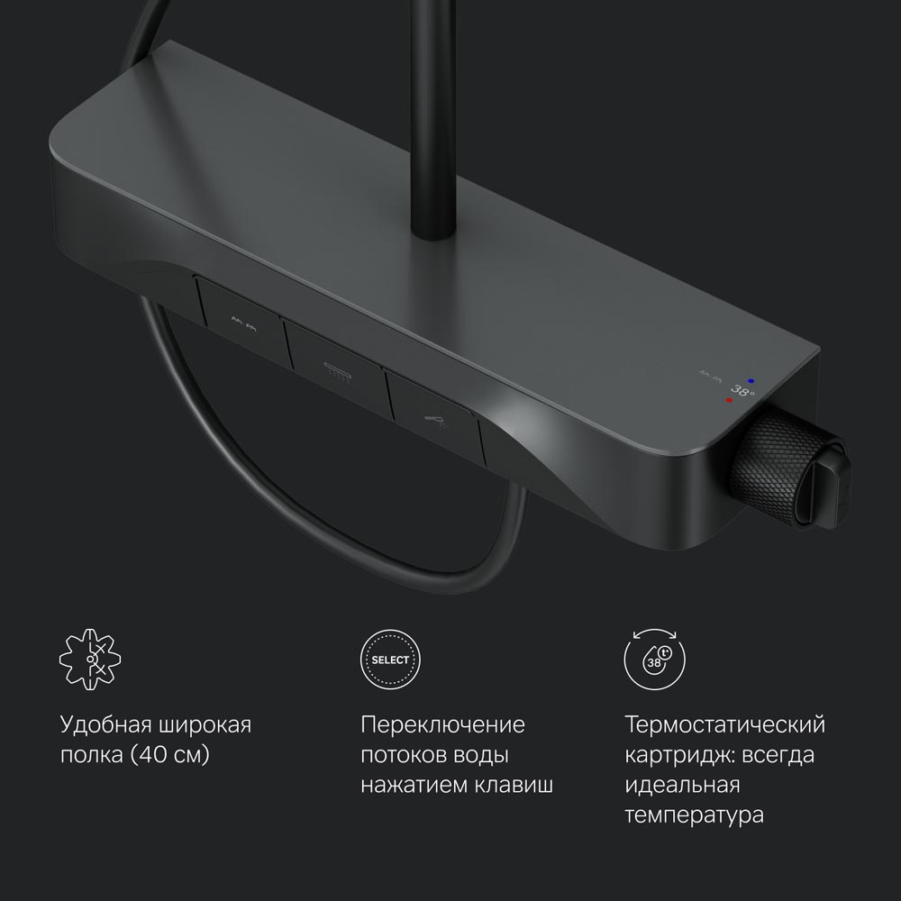 Душевая система с душевым смесителем-полкой и термостатом AM.PM Func F078F222, черный