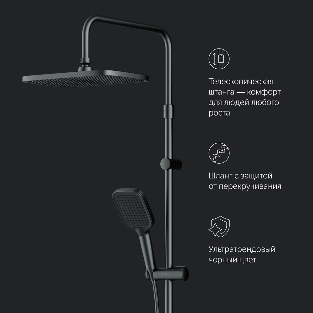 Встречайте коллекцию Func – самую функциональную коллекцию в линейке AM.PM. Наши инженеры продумали и учли каждую деталь чтобы сделать процесс использования продуктов максимально простым и комфортным для всех членов семьи. Еще больше места для хранения: смеситель выполнен в виде вместительной полочки. Внушительный размер полки (40 см.) позволяет хранить все любимые средства под рукой а эстетичный силуэт станет настоящим украшением современной ванной комнаты. Интуитивно понятное управление: всего одна удобная ручка для настройки температуры и потока воды. Благодаря специально спроектированной эргономичной ручке вы можете управлять душевой системой даже с мыльными руками. Переключение потоков воды осуществляется нажатием клавиши. Телескопическая штанга регулируется по высоте в диапазоне от 1030 до 1460 мм обеспечивая комфорт для людей любого роста. А трендовая прямоугольная форма и увеличенный размер тропического душа подарят вам ощущения настоящего домашнего SPA.