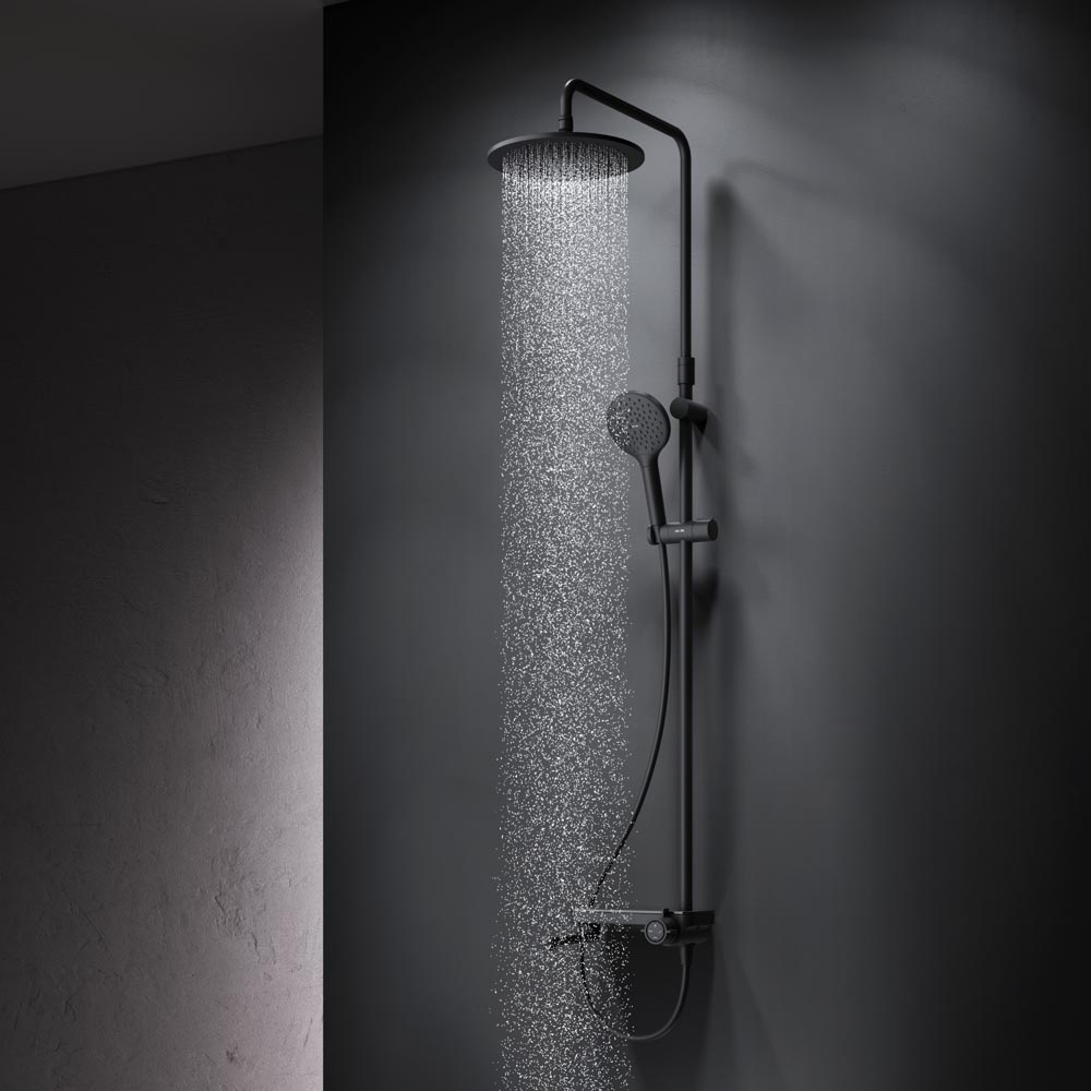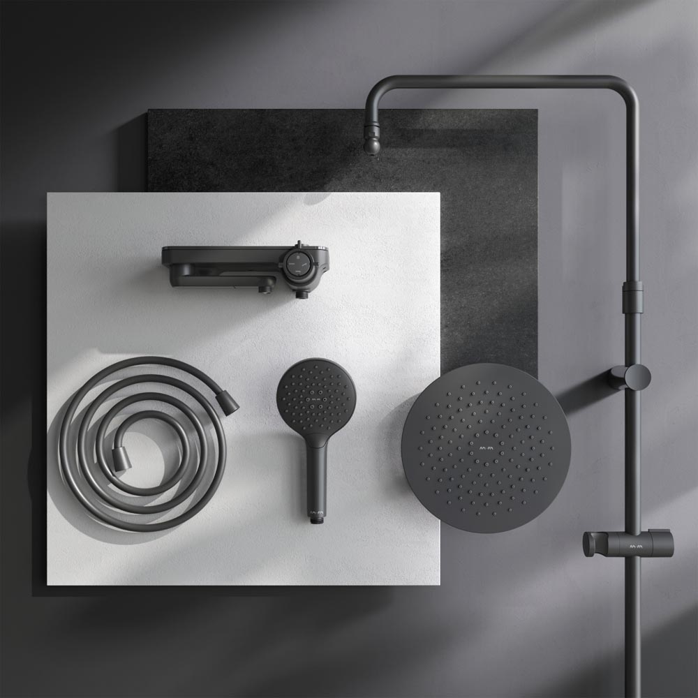 Оптимальным вариантом для небольших ванных помещений станет душевая система с полочкой AM.PM Like F0780722 (черная).