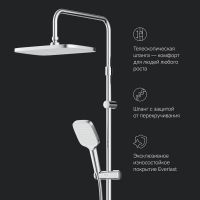 Встречайте коллекцию Func – самую функциональную коллекцию в линейке AM.PM. Наши инженеры продумали и учли каждую деталь чтобы сделать процесс использования продуктов максимально простым и комфортным для всех членов семьи. Смеситель для душа с термостатом: термостатический картридж с высокочувствительным термоэлементом и стопором безопасности на 38 градусах надежно защитит вас от ожога даже при внезапном отключении холодной воды. Продуманные детали для вашего удобства: телескопическая штанга регулируется по высоте обеспечивая комфорт для людей любого роста. Прямоугольная форма увеличенный размер леек и 3 режима ручного душа подарят вам ощущения настоящего домашнего SPA. Безупречный внешний вид: яркий геометричный дизайн и утонченный силуэт – душевая система Func станет настоящим украшением современной ванной комнаты.