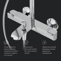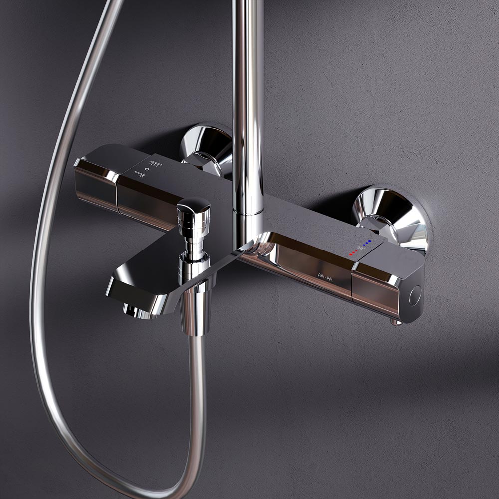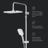 Встречайте коллекцию Func - самую функциональную коллекцию в линейке AM.PM. Наши инженеры продумали и учли каждую деталь чтобы сделать процесс использования продуктов максимально простым и комфортным для всех членов семьи. Смеситель для душа с термостатом: термостатический картридж с высокочувствительным термоэлементом и стопором безопасности на 38 градусах надежно защитит вас от ожога даже при внезапном отключении холодной воды. Продуманные детали для вашего удобства: телескопическая штанга регулируется по высоте обеспечивая комфорт для людей любого роста. Прямоугольная форма увеличенный размер леек и 3 режима ручного душа подарят вам ощущения настоящего домашнего SPA. Безупречный внешний вид: яркий геометричный дизайн и утонченный силуэт – душевая система Func станет настоящим украшением современной ванной комнаты.