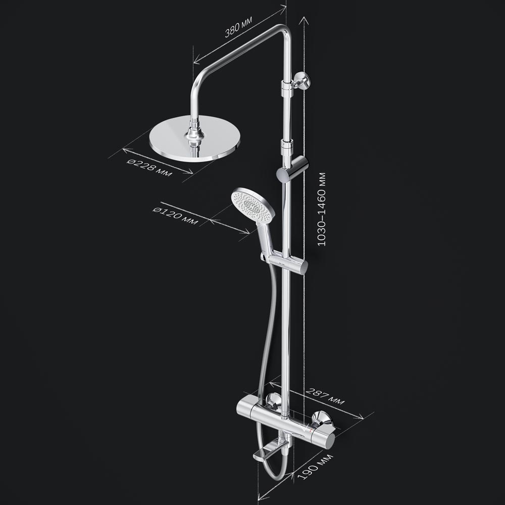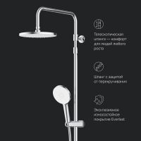 Новое прочтение культовой коллекции X-Joy. Еще больше инновационных решений для вашей ванной комнаты. Трендовые формы технологичные материалы и продуманные детали которые теперь доступны каждому. По самой привлекательной цене. Благодаря специально спроектированной эргономичной ручке вы можете управлять душевой системой даже с мыльными руками. Термостатический картридж с высокочувствительным термоэлементом и быстрой реакцией на изменения температуры или давления надежно защищает от ожога даже при внезапном отключении холодной воды. Телескопическая штанга с диапазоном регулировки 400 мм сделает процесс принятия душа удобным для людей любого роста. А благодаря увеличенным размерам тропического (228 мм) и ручного (120 мм) душей вы ощутите все преимущества использования дизайнерского продукта. Душевая система X-Joy была создана для того чтобы радовать вас каждый день.