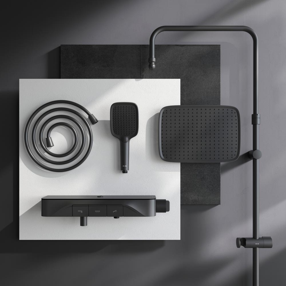 Душевая система с ванно-душевым смесителем-полкой AM.PM Func F078F722, черный