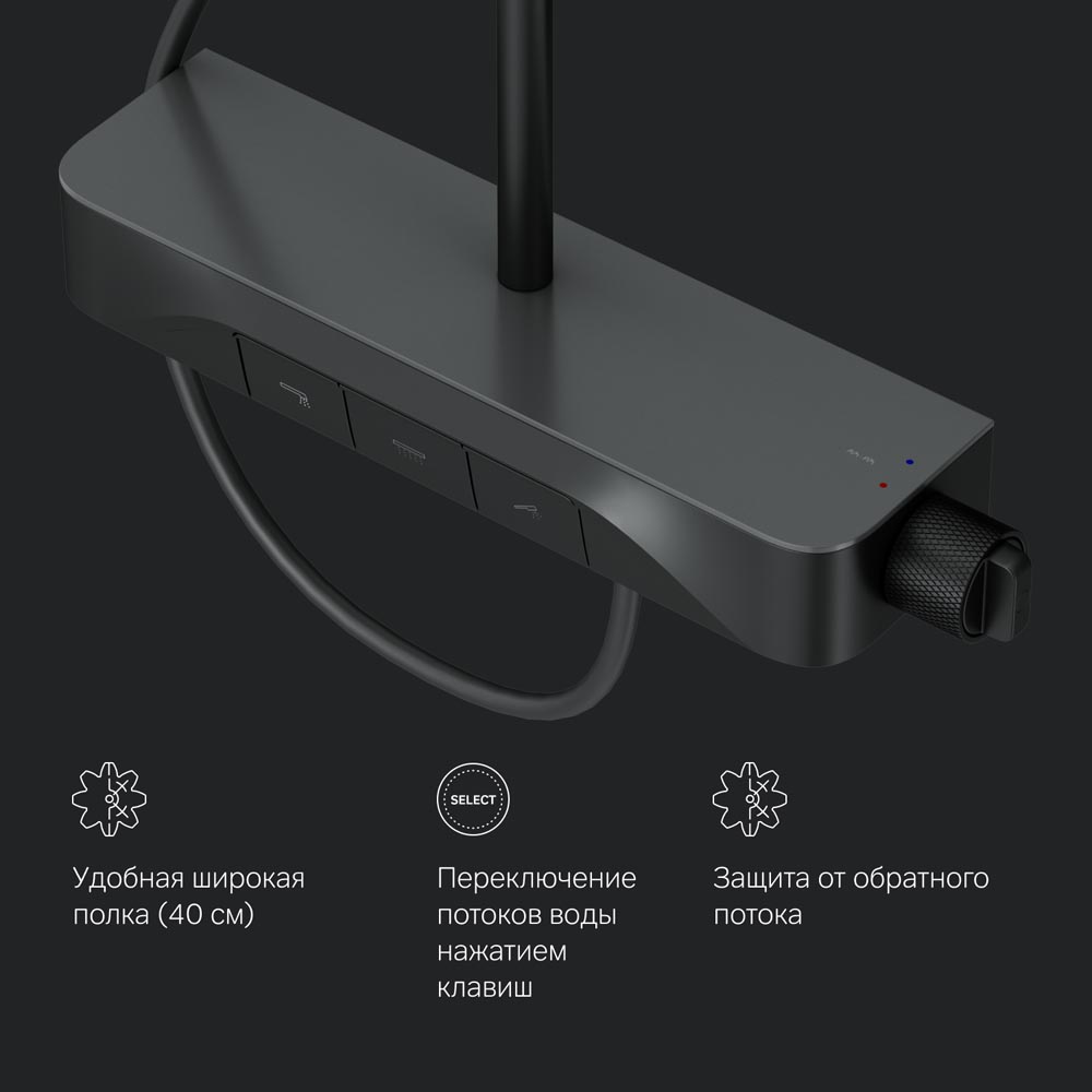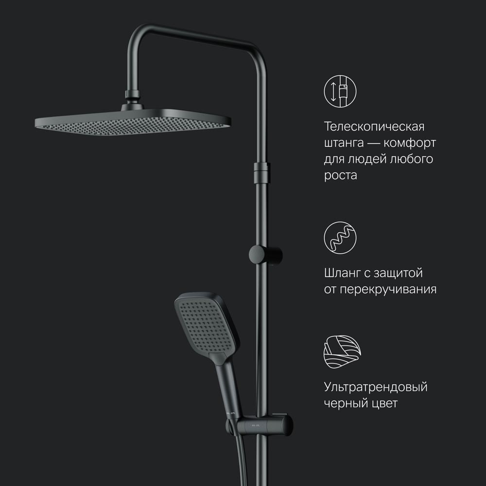 Встречайте коллекцию Func – самую функциональную коллекцию в линейке AM.PM. Наши инженеры продумали и учли каждую деталь чтобы сделать процесс использования продуктов максимально простым и комфортным для всех членов семьи. Еще больше места для хранения: смеситель выполнен в виде вместительной полочки. Внушительный размер полки (40 см.) позволяет хранить все любимые средства под рукой а эстетичный силуэт станет настоящим украшением современной ванной комнаты. Интуитивно понятное управление: всего одна удобная ручка для настройки температуры и потока воды. Ручка дополнена инновационным антискользящим покрытием которое позволяет комфортно управлять душевой системой даже с мыльными руками. Переключение потоков воды осуществляется нажатием клавиши. Продуманные детали для вашего удобства: телескопическая штанга регулируется по высоте обеспечивая комфорт для людей любого роста. Трендовая прямоугольная форма увеличенный размер леек и 3 режима ручного душа подарят вам ощущения настоящего домашнего SPA.