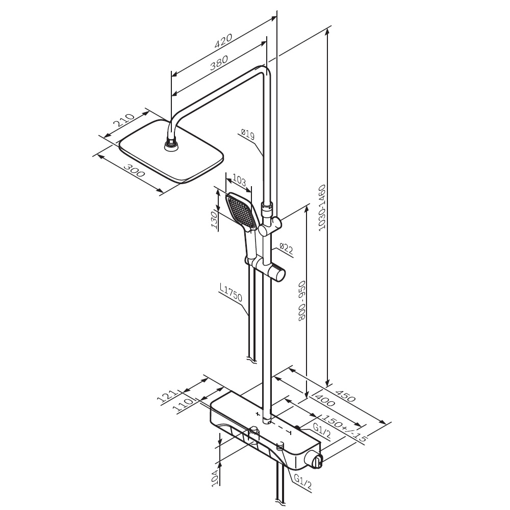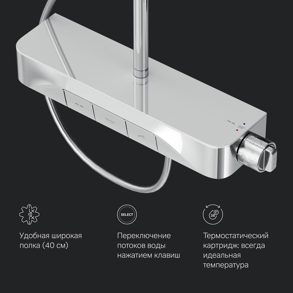 Душевая система с ванно-душевым смесителем-полкой и термостатом AM.PM Func F078F300, хром