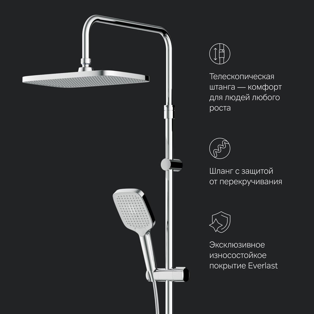 Встречайте коллекцию Func – самую функциональную коллекцию в линейке AM.PM. Наши инженеры продумали и учли каждую деталь чтобы сделать процесс использования продуктов максимально простым и комфортным для всех членов семьи. Еще больше места для хранения: смеситель выполнен в виде вместительной полочки. Внушительный размер полки (40 см.) позволяет хранить все любимые средства под рукой а эстетичный силуэт станет настоящим украшением современной ванной комнаты. Интуитивно понятное управление: всего одна удобная ручка для настройки температуры и потока воды. Благодаря специально спроектированной эргономичной ручке вы можете управлять душевой системой даже с мыльными руками. Переключение потоков воды осуществляется нажатием клавиши. Продуманные детали для вашего удобства: телескопическая штанга регулируется по высоте обеспечивая комфорт для людей любого роста. Трендовая прямоугольная форма и увеличенный размер тропического душа подарят вам ощущения настоящего домашнего SPA.