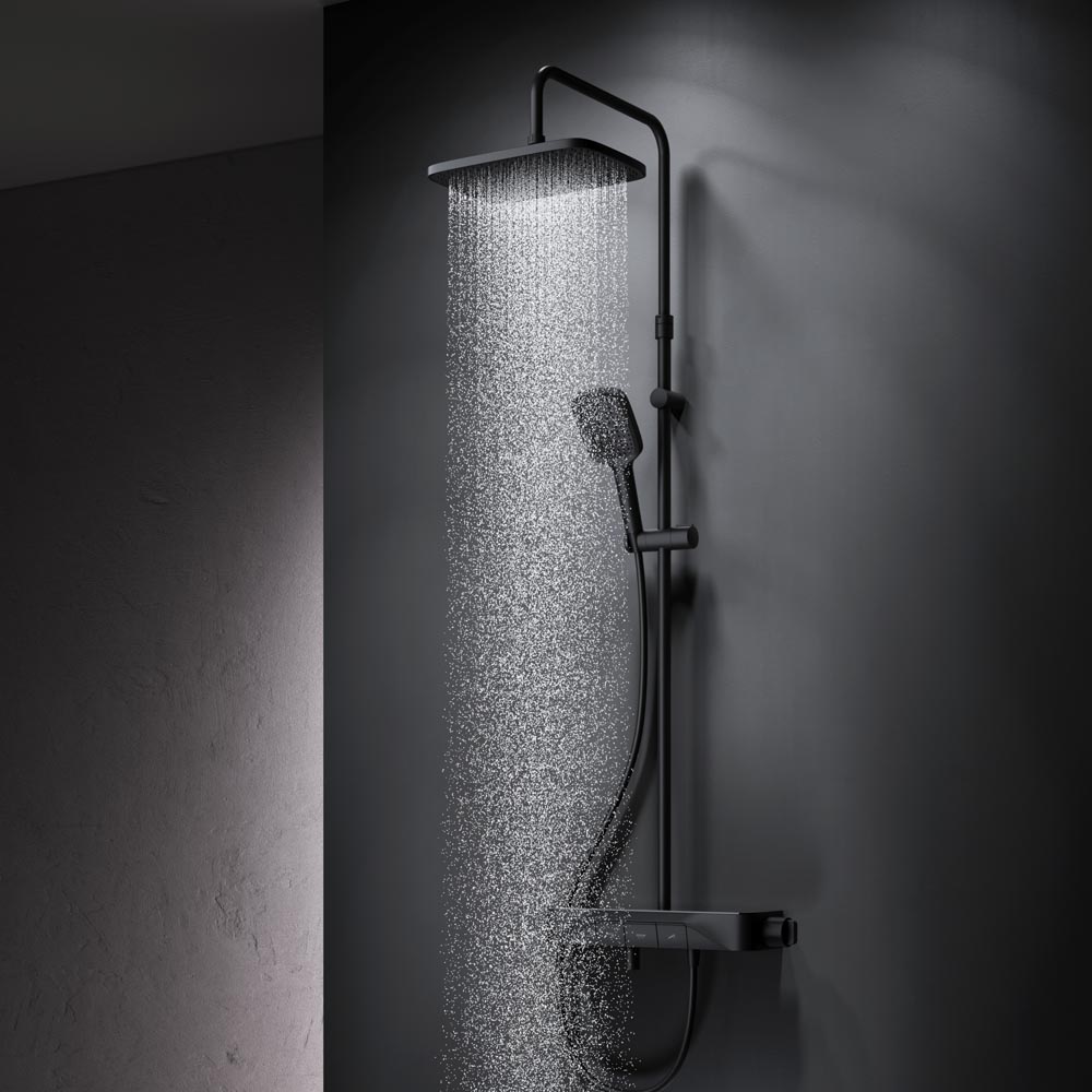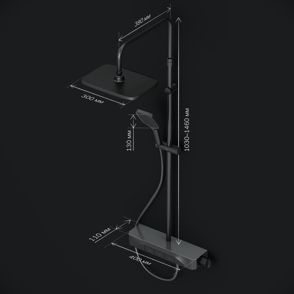 Душевая система с ванно-душевым смесителем-полкой и термостатом AM.PM Func F078F322, черный