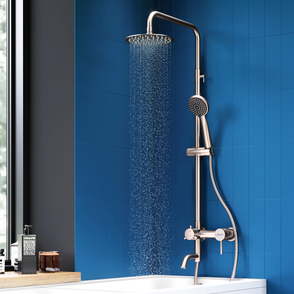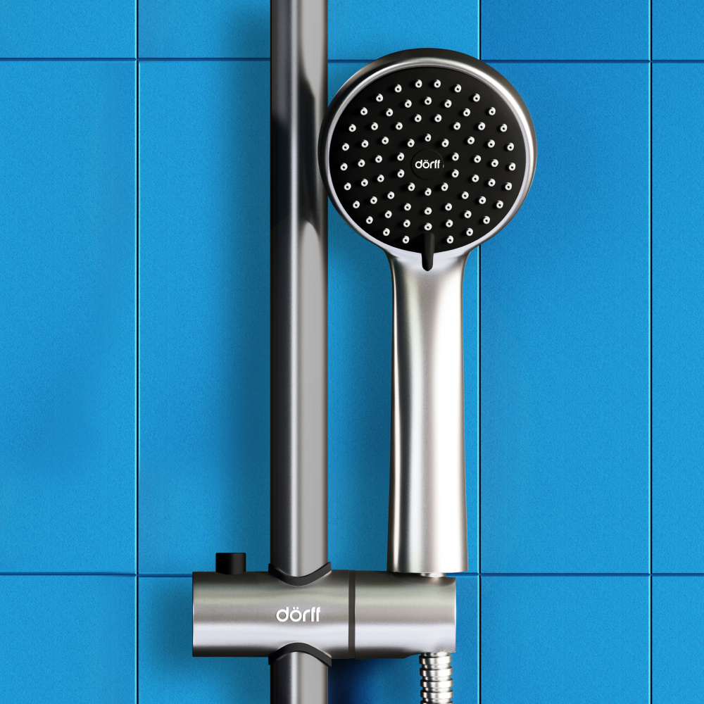 Душевая система Dorff со смесителем - не продукт для избранных. Мы позаботились о том, чтобы удовольствие от использования верхнего душа стало доступно всем, и при этом предусмотрели удобные дополнительные функции. Хороший хозяин оценит ручные и верхние души солилных диаметров, с возможностью выбора режима, шланги с защитой от перекручивания, стойки с возможностью регулировки по высоте и стильный цвет нержавеющей стали.