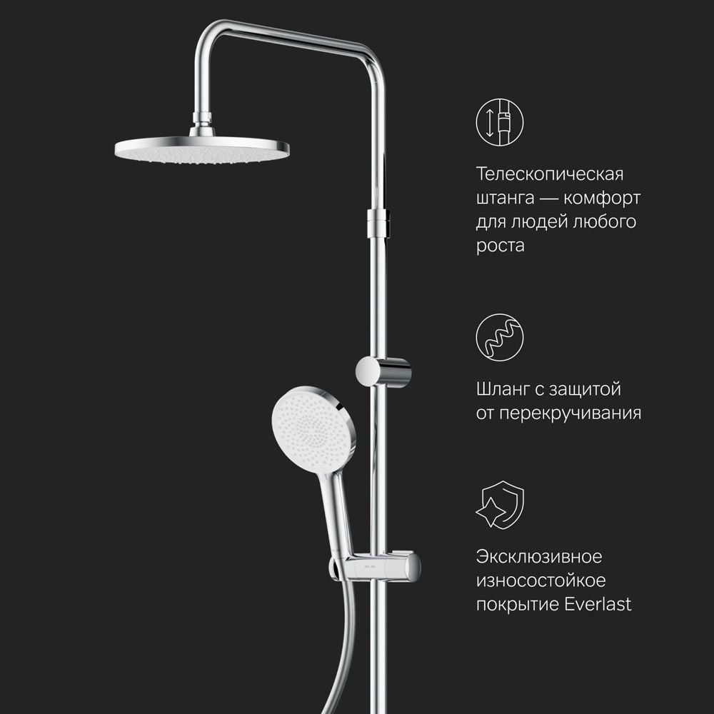 Новое прочтение культовой коллекции X-Joy. Еще больше инновационных решений для вашей ванной комнаты. Трендовые формы технологичные материалы и продуманные детали которые теперь доступны каждому. По самой привлекательной цене. Смеситель в виде полочки оборудован дополнительной нишей. Это идеальное решение для современной ванной комнаты где самые необходимые вещи всегда находятся под рукой. Телескопическая штанга с диапазоном регулировки 400 мм сделает процесс принятия душа удобным для людей любого роста. А благодаря увеличенным размерам тропического (220 мм) и ручного (120 мм) душей вы ощутите все преимущества использования дизайнерского продукта. Душевая система X-Joy была создана для того чтобы радовать вас каждый день.