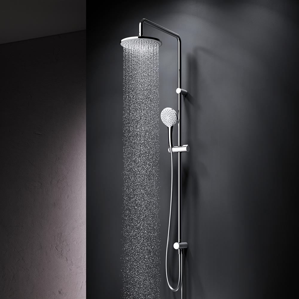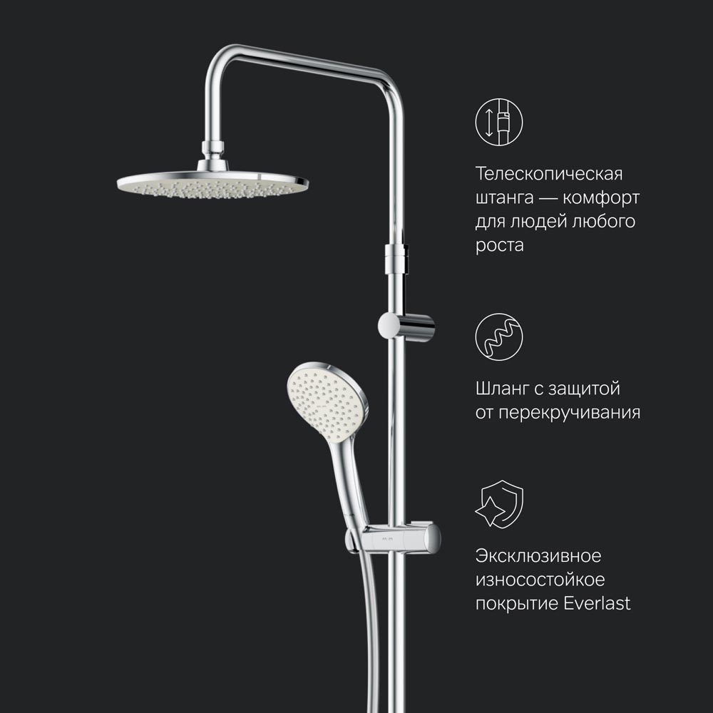 Диаметр душевых леек (верхний душ 220 мм и ручной душ 110 мм) позволит ощутить преимущества тропического душа даже в стандартной ванной, тогда как увеличенная длина шланга 1750 мм обеспечит свободу движений во время принятия душа.