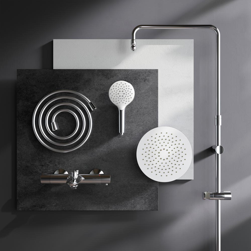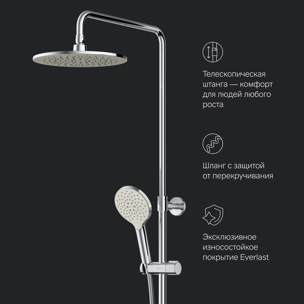 Душевая стойка AM.PM LIKE F0780564 включает в себя фильтр и обратный клапан. Излив для ванны поставляется в комплекте.