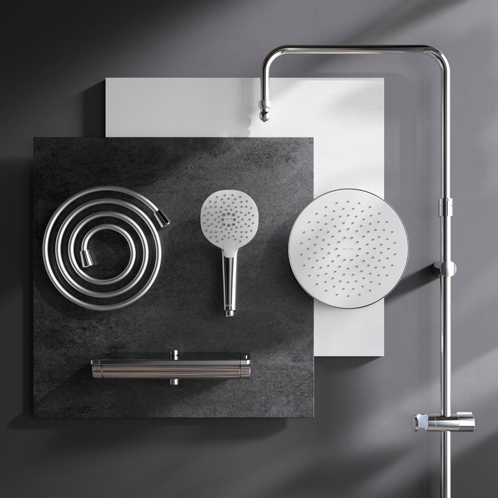​Экстраординарный дизайн Душевой системы с термостатом AM.PM SPIRIT V2.0 F0770A400: современный минималистичный стиль и экстра-функциональность.