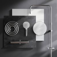 Регулируемый в трех плоскостях держатель для ручного душа, шаровый шарнир в держателе верхнего душа позволяет регулировать угол наклона, шарнирное соединение защищает душевой шланг от перекручивания.