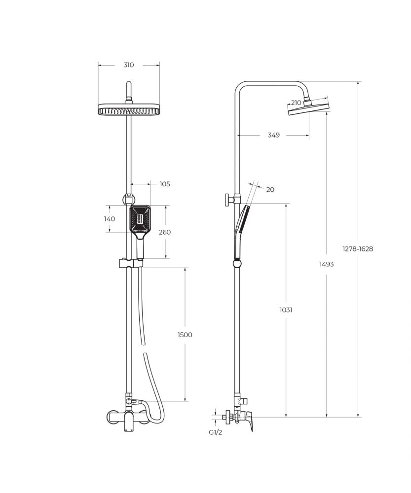 🚿 Широкий диапазон регулировки по высоте делает душевую стойку более универсальной для ванн и душевых зон .