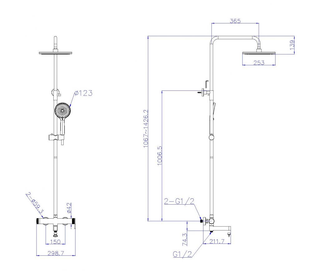 DELTA2.0 Душевая стойка со смесителем и изливом, сатин DEL2.0-VSCM-IN